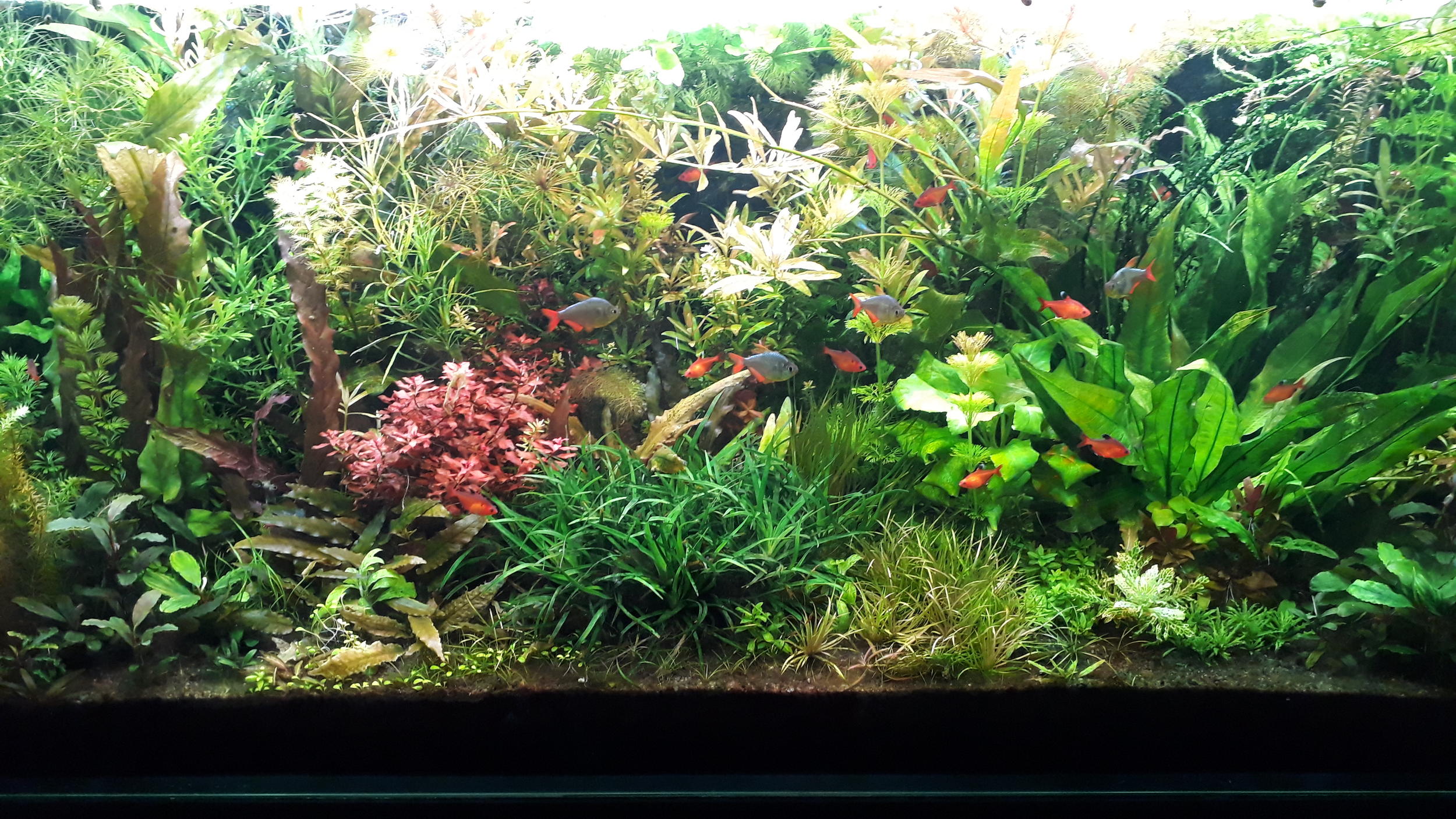 Плюс СО2 нужно полноценно тем более медленно растущая трава очень чуствительна к разгону.макро явно ниже предела видимости... и его явно не хватает..