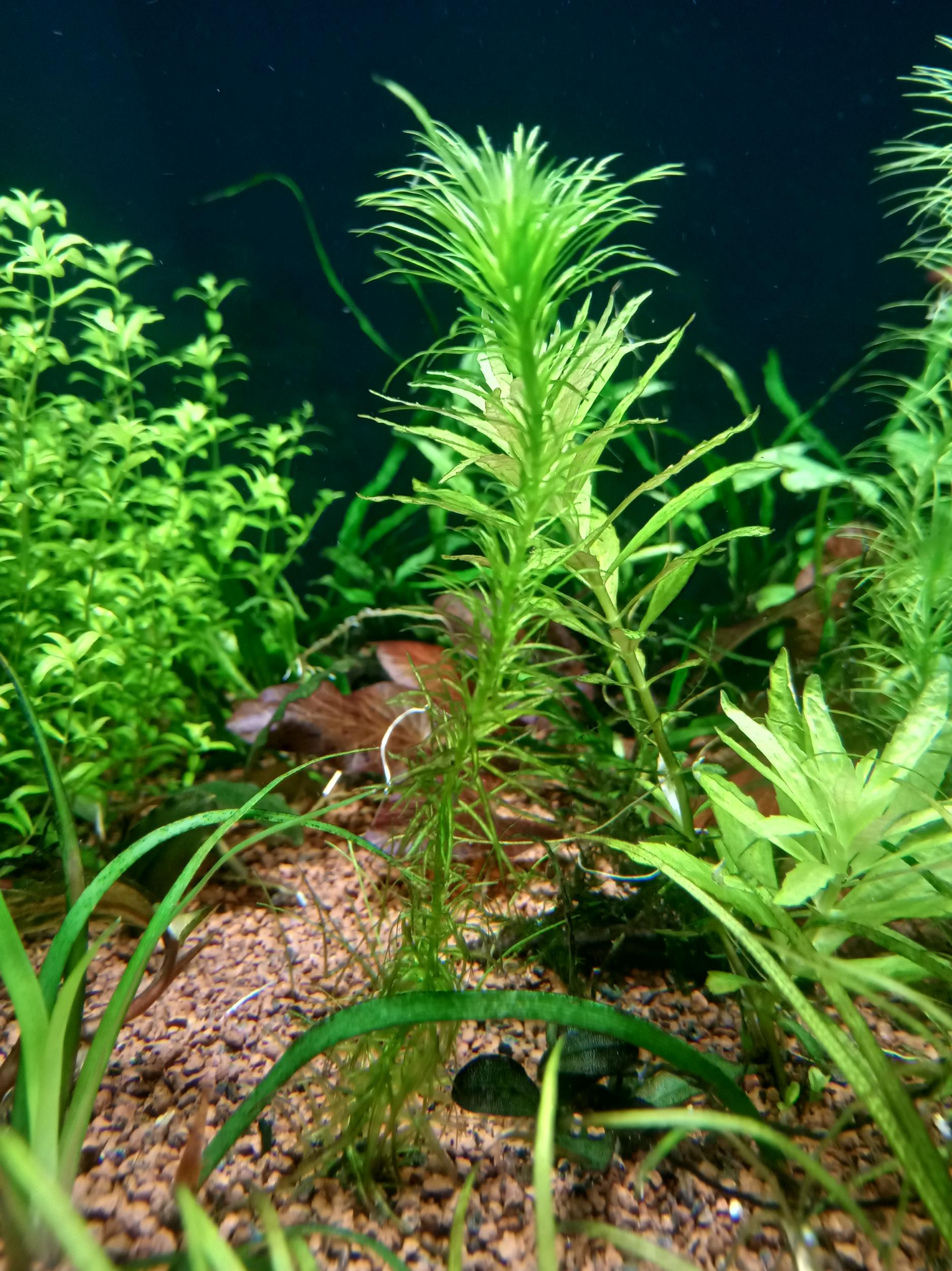 Ещё свежие листья весьма белесые особенно на Гидрокотиле. Уменьшаю свет, перестает все расти.