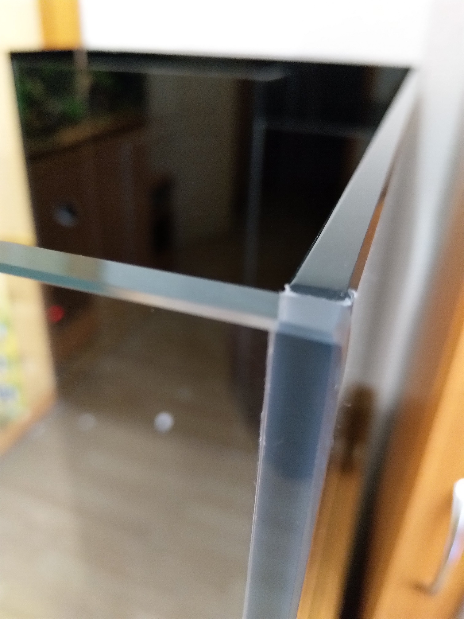 Собственно тумба с утопленной столешницей, дабы скрыть линию нижней склейки стекла.