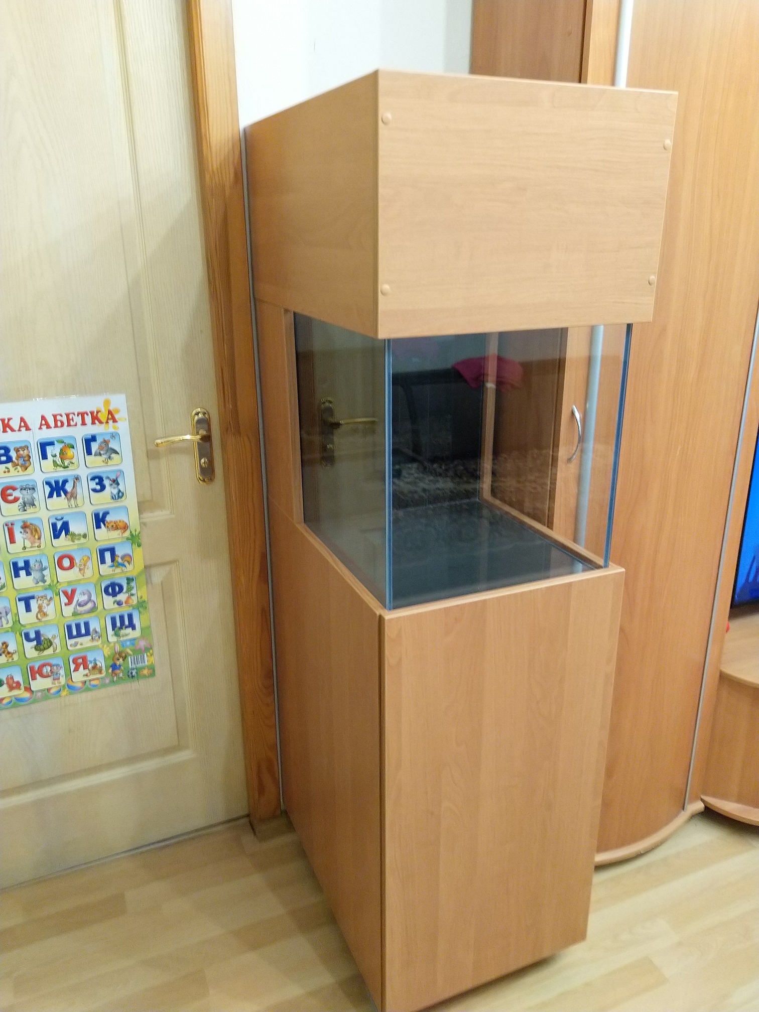 1. Тумба частично собрана, для дальнейшей подгонки ждет аквариум.