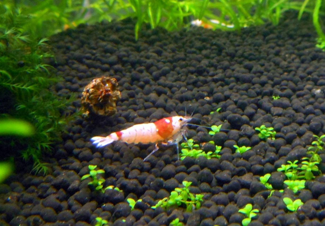 Собственно, много где видел на картинках красивый черный грунт, например, такое (первая картинка с креветкой).