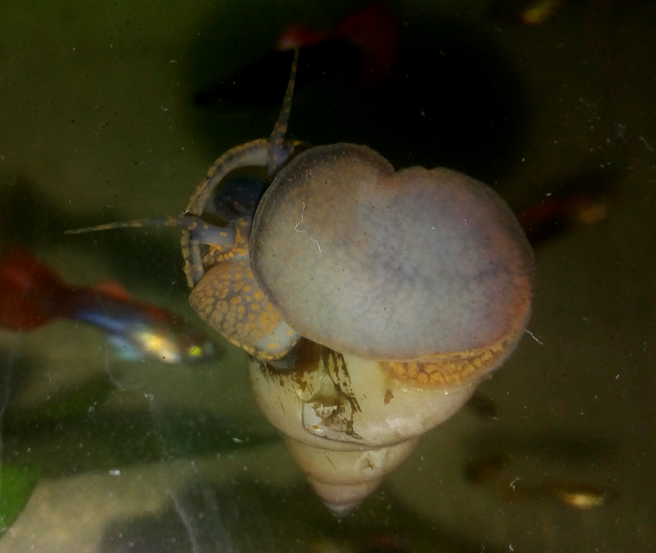 Купил в зоомагазине новых для меня улиток Filopaludina martensi (живородки с Юго-Восточной Азии). Раковина желтовато-белесая, явно обработаны какими-то антисептиками, окислителями. Очень похожи на наших лужанок живородок. Дают приплод немного, но регулярно. Молодняк серого цвета, вроде, растет. Капусту, тыкву, огурцы игнорируют.