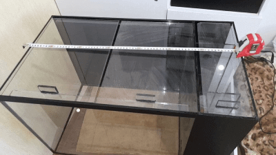 Новый аквариум со встроенным внутренним сампом, толщина стекла 6 мм, для удобства использования покровное стекло разделено на три части.