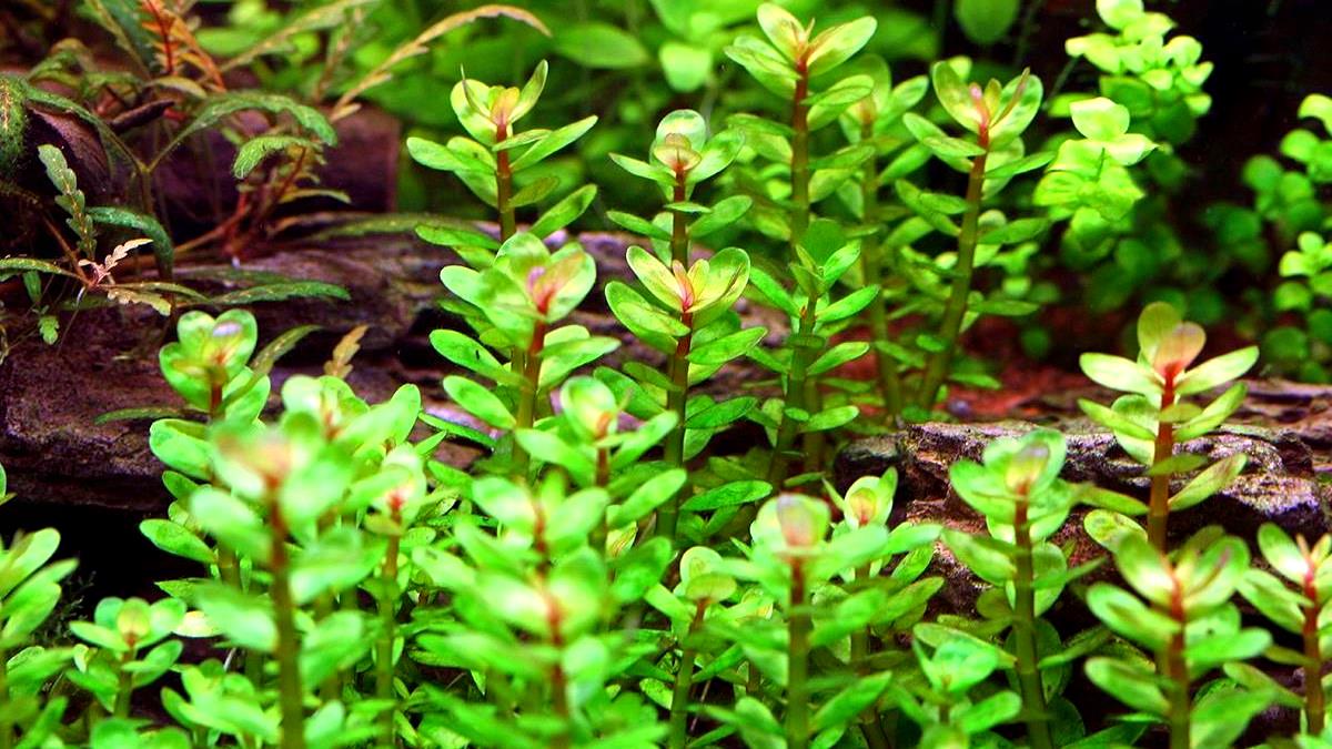 Людвигия овалис (Ludwigia ovalis) Симпатичное, нетребовательное аквариумное растение с небольшими зеленовато-красными овальными листиками. В зависимости от условий освещения, окраска листьев растения может меняться. Верхняя сторона листовой пластинки темно-зеленого цвета, но при достаточно сильном освещении становится красной. Нижняя сторона практически при любых условиях остается очень красной, благодаря этому создается очень красивый контраст. Людвигия довольно быстро разрастается, пуская с основной веточки боковые. В итоге вскоре образуются красивые густые кусты.
