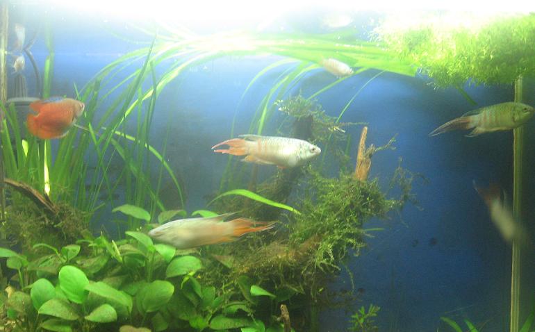 очень милую, живут дружно в 25л, несмотря на свои немаленькие размеры! В драках и разборках замечены не были, (раньше жили с харацинкой, жемчужными гурами, лялиусами и радужными рыбками, но не любят почему-то гуппи, а остальная рыба-по барабану!)