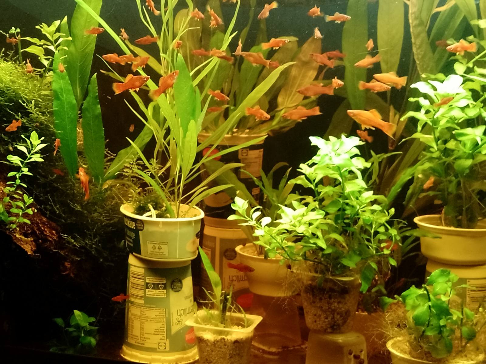 ....Вчера наш друг,Владимир 456 ,прислал мне фото своего аквариума ...Знает,что я на безрыбье и скучаю от того.Вот и решил скрасить мое скучаете.Это те меченосцы,что он развел из того состава рыб,что были в аквариуме,который он показывал нам выше.