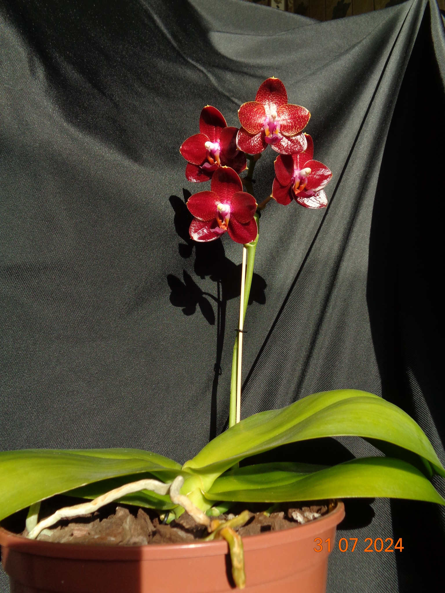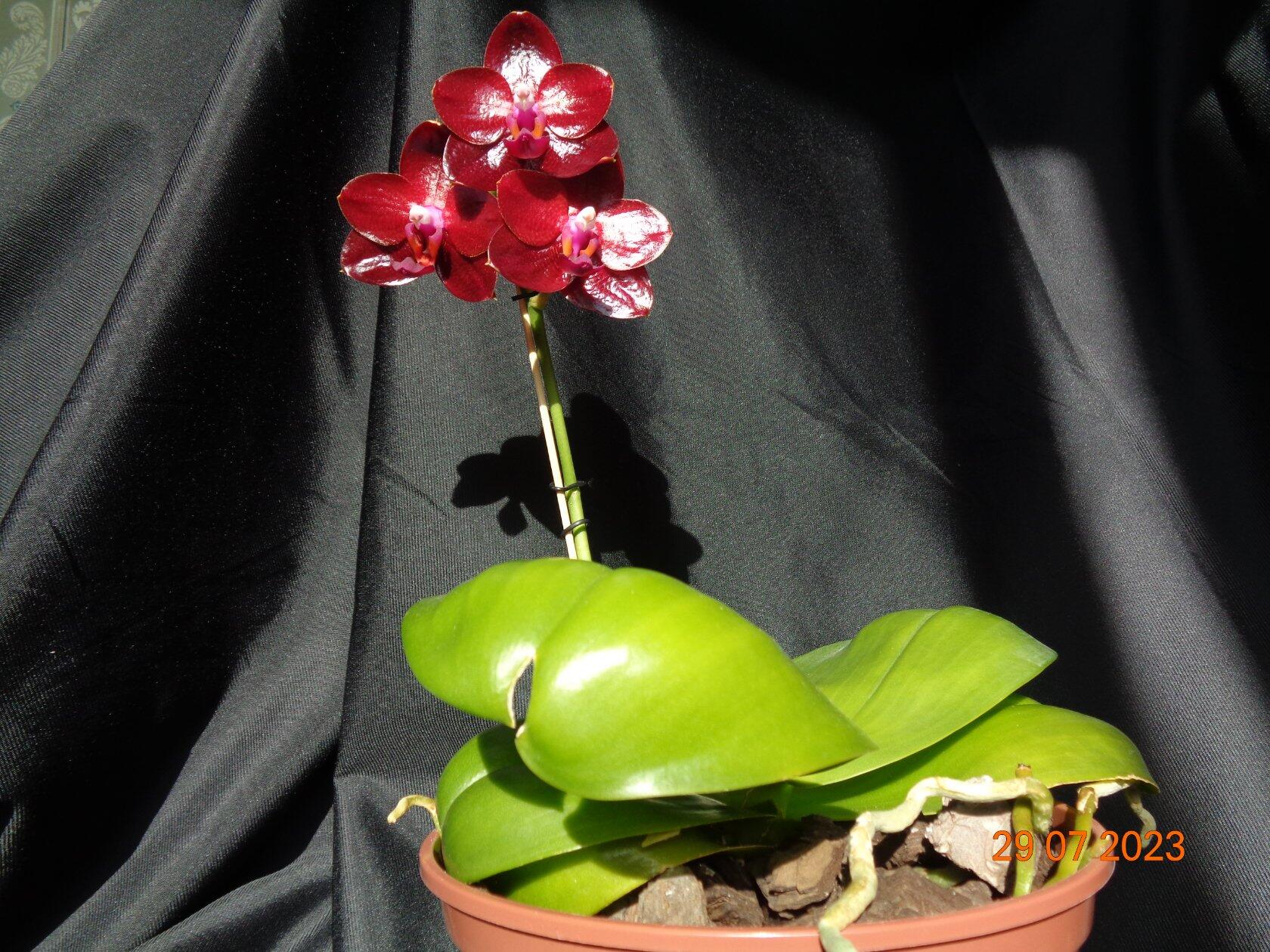 Phalaenopsis Allura ‘Ruby Diamond’ чергове цвітіння.. із за спеки трохи червоної фарби не вистачило..
