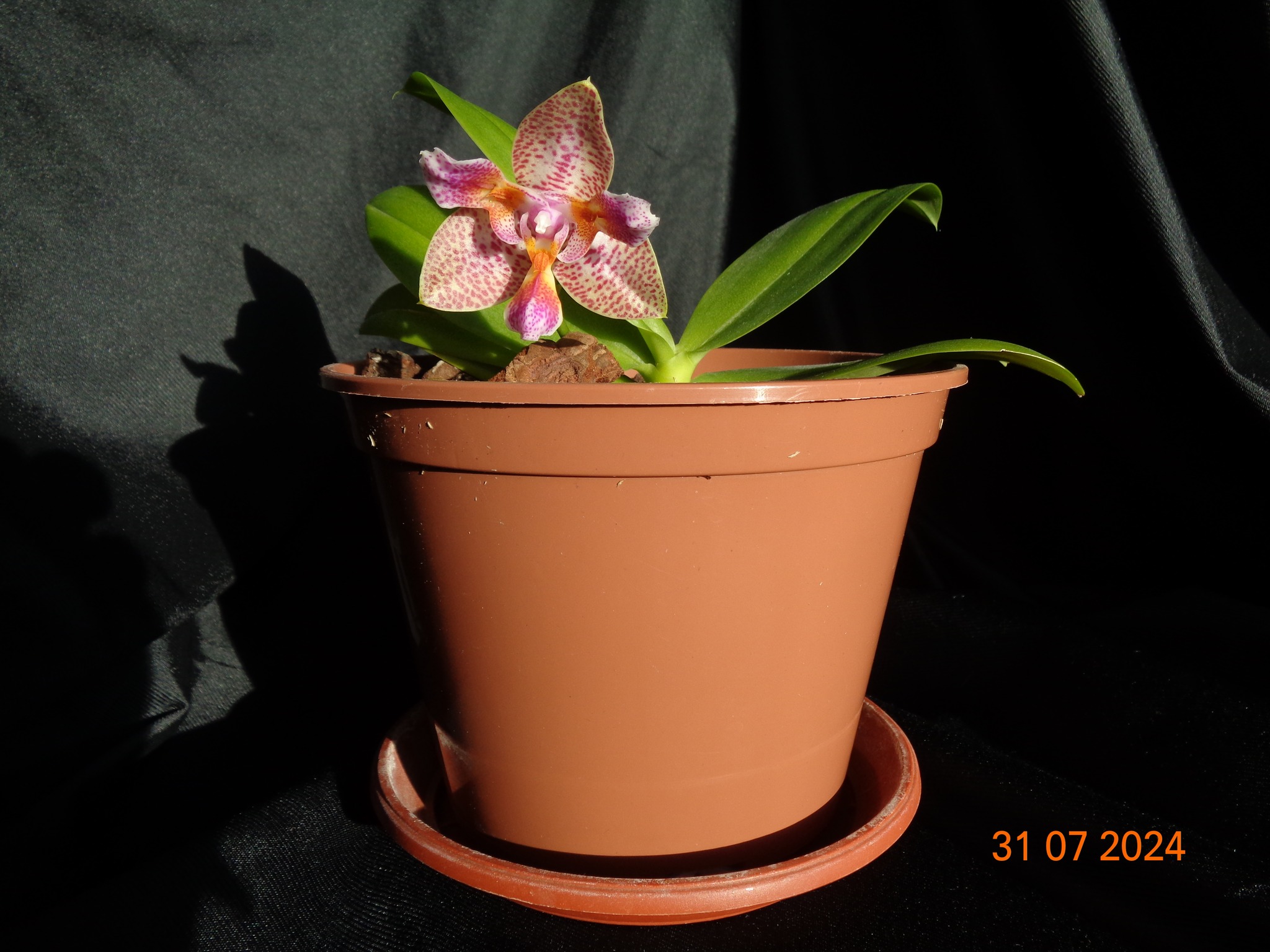 Перше цвітіння моєї Phalaenopsis Joy Spring Tina 'Anaconda'... квітка 7,5 см... воскова.. пахне але не дуже сильно... не розумію за що люди платили 8-10 років назад по 500-700 доларів..