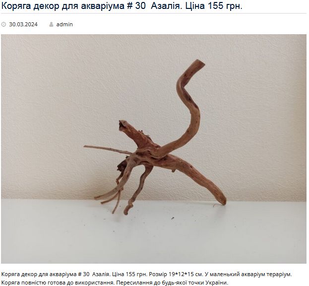 Пропоную Вашій увазі 36 коряг для акваріума. Азалія.