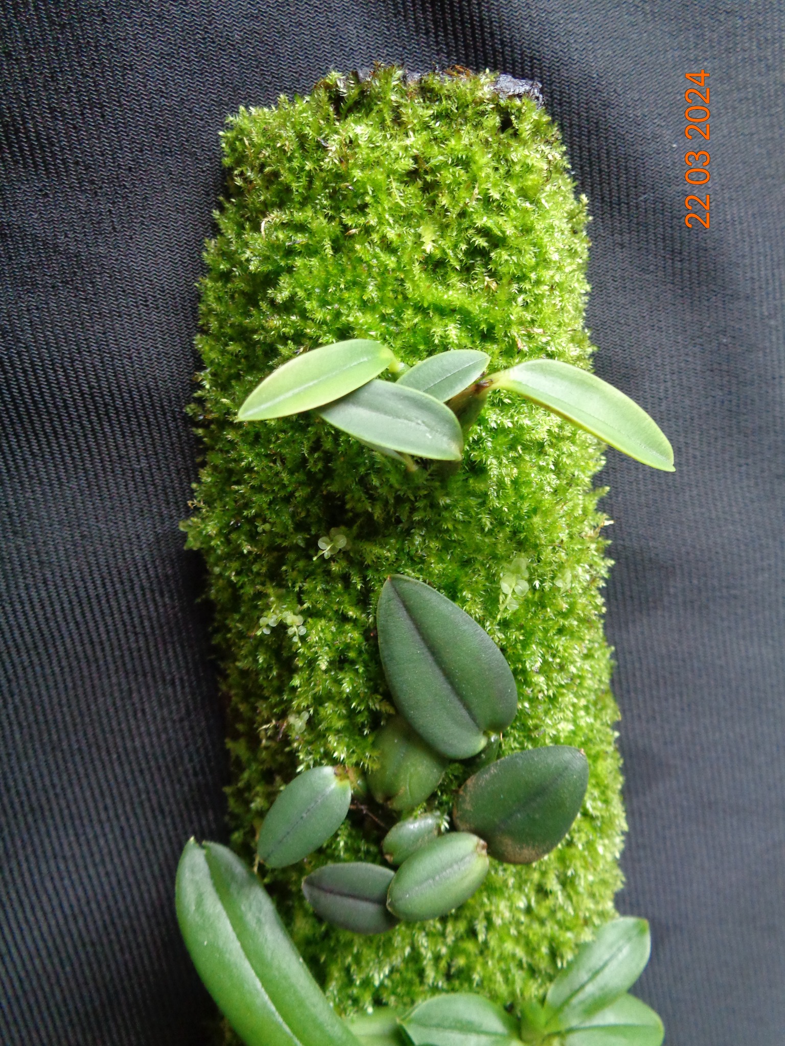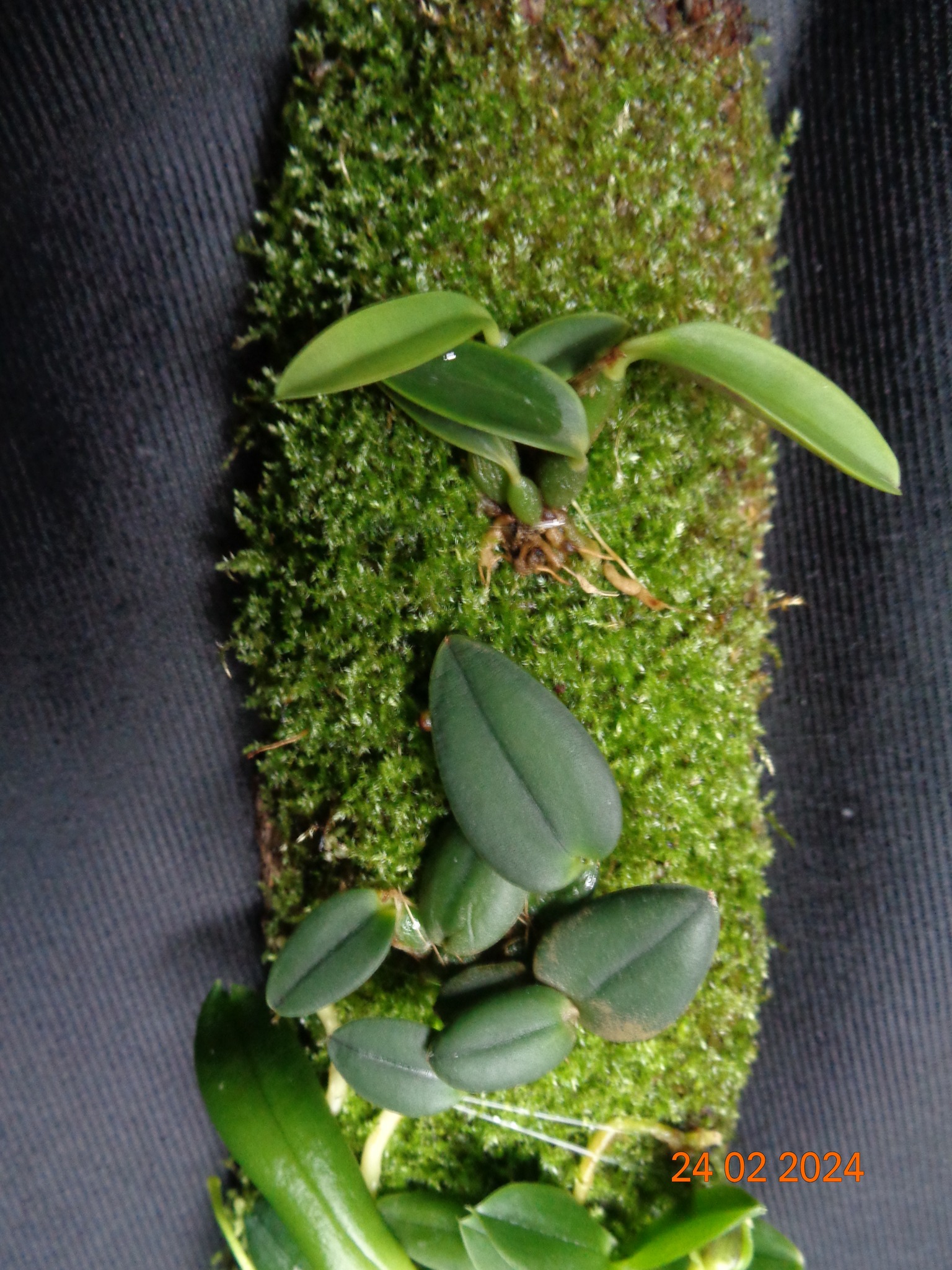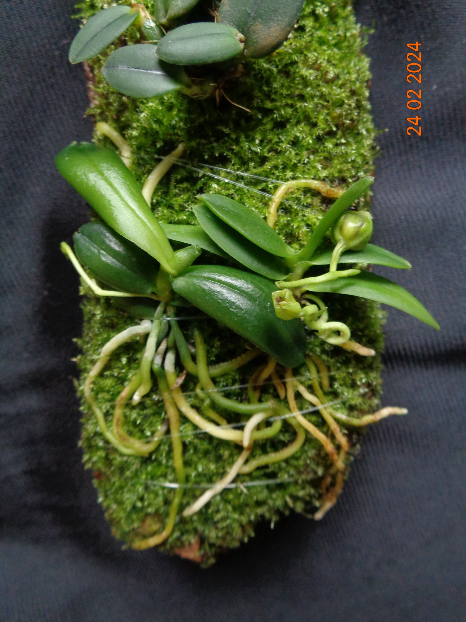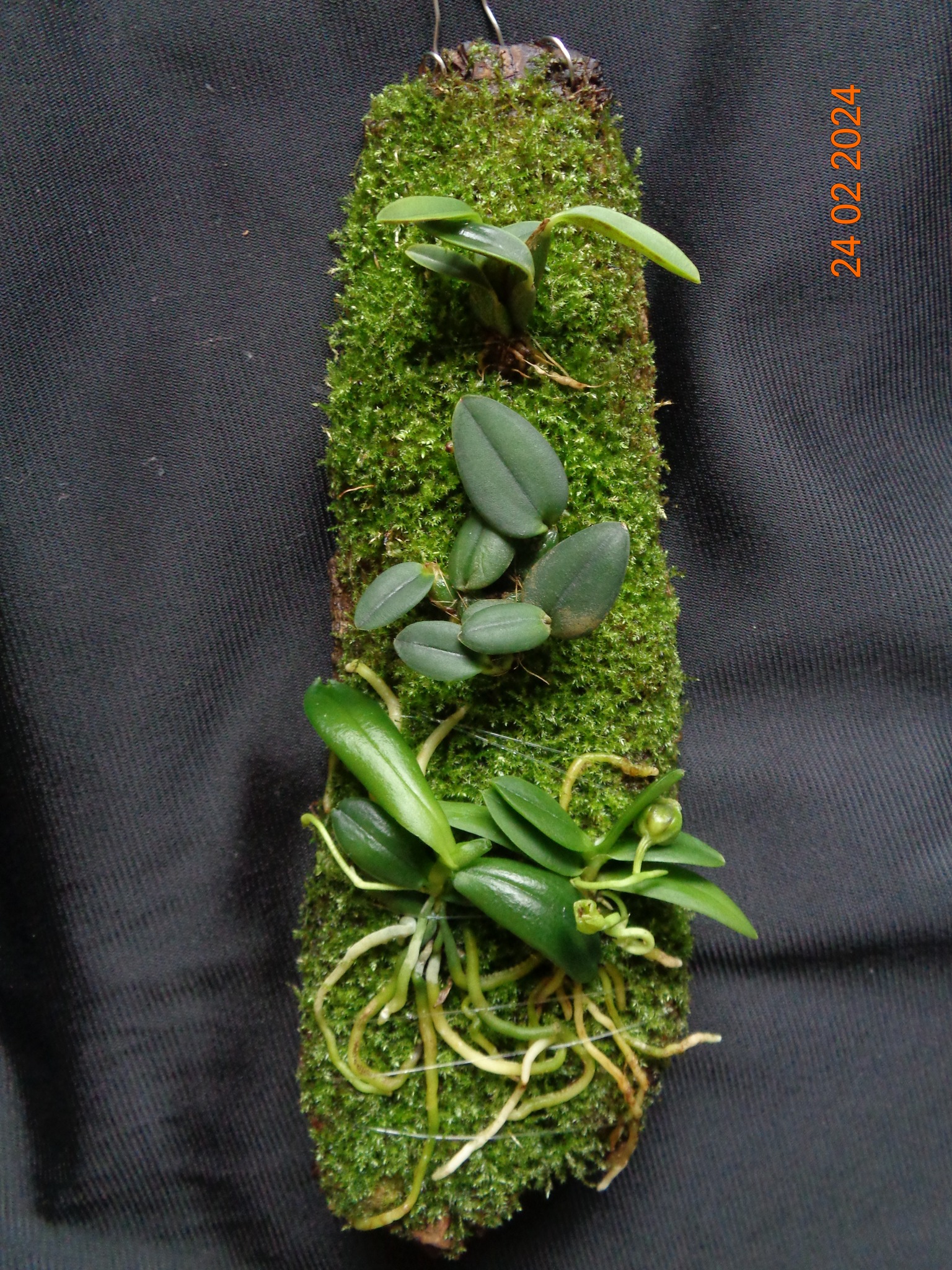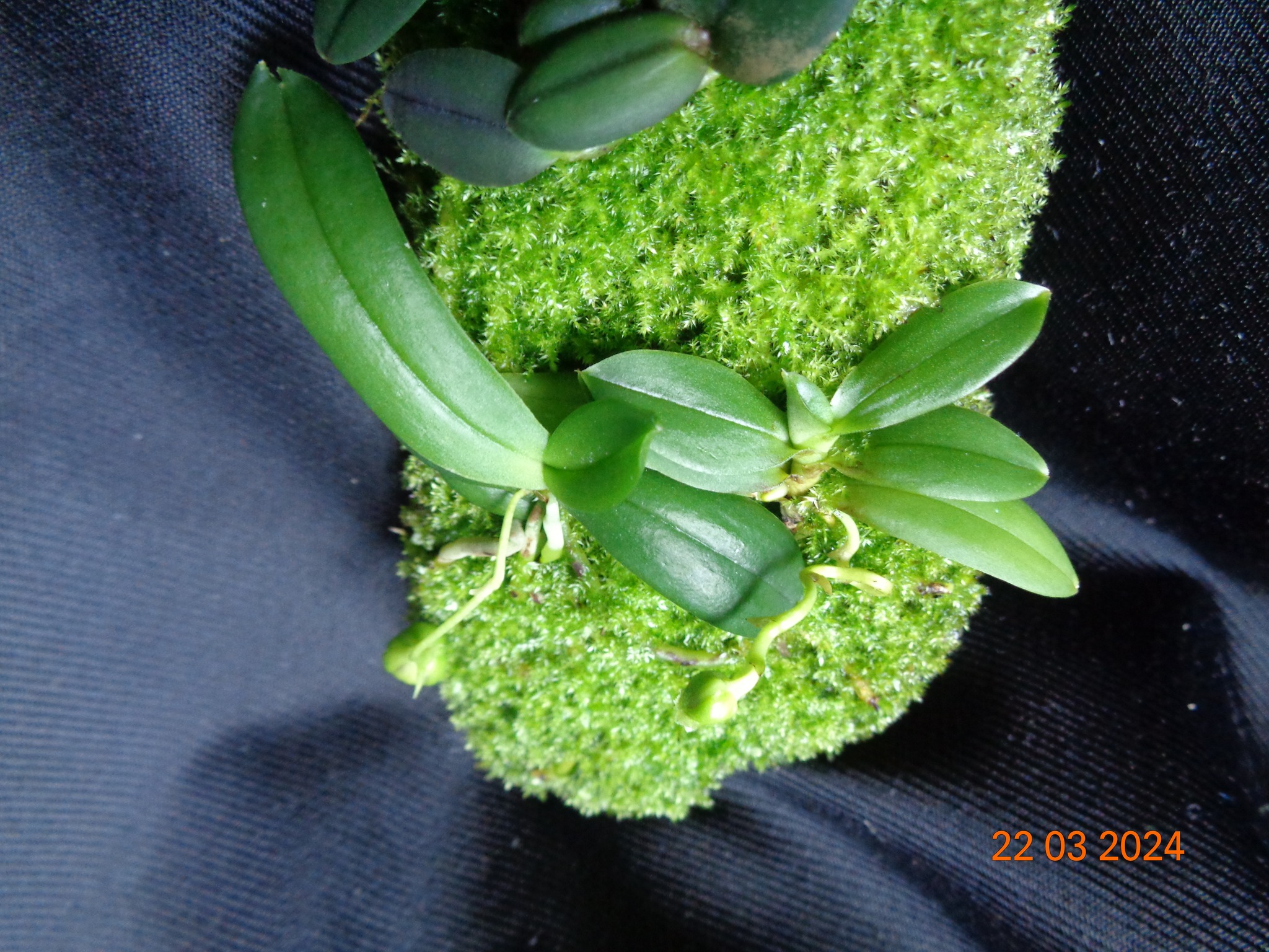 Мій від створення до посадки орхідей і далі... добре видно як мох заріс корені через місяць після посадки. Росте звичайні кімнатні умови.. вологість 40-50% температура 22-24 градуса . Полив-обприскую дистильованою водою раз на добу, вранці.