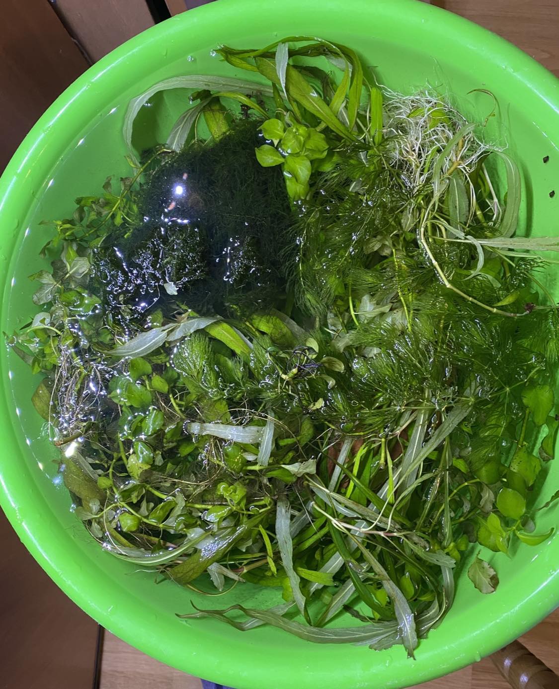 Вітаю. І знову є тазок рослин після прополки. Людвігія зелена, гігрофіла, трохи роголисника, 2 види моху (назву не знаю, фото можу зробити)