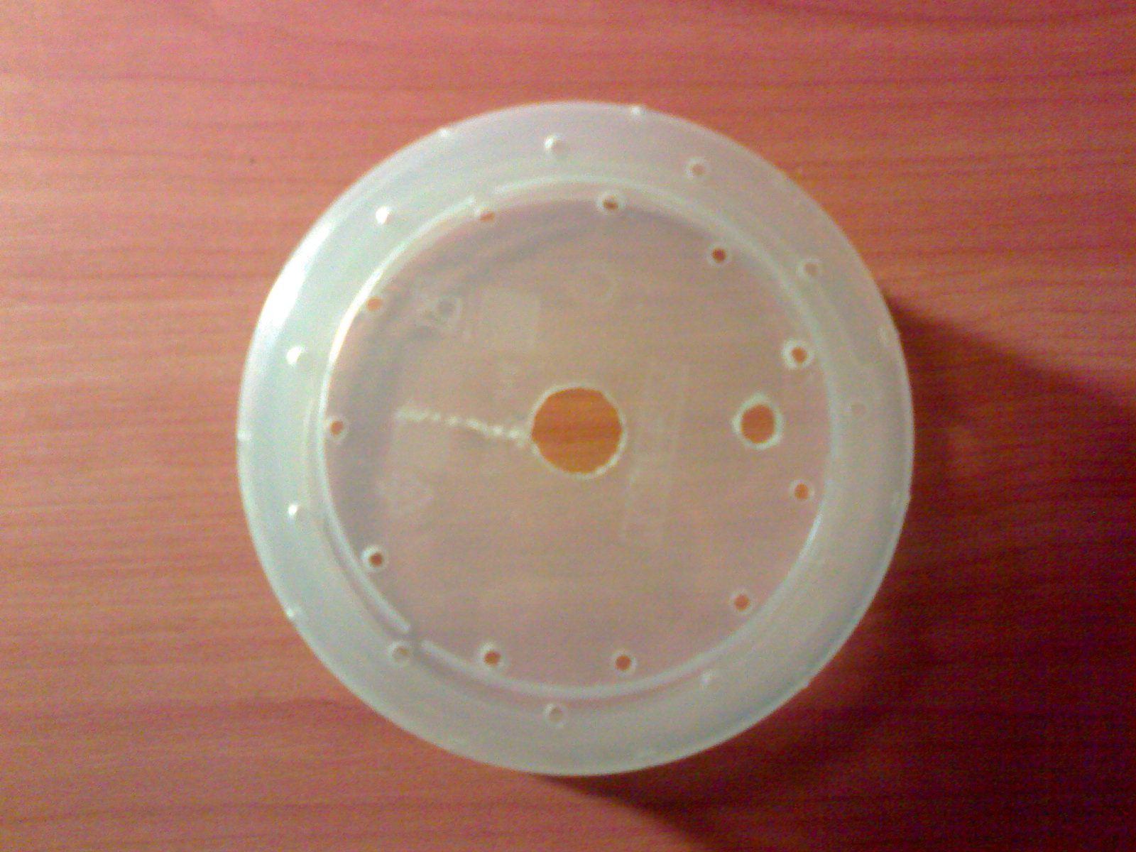 После покупки ваза заняла почетное место наверху книжного шкафа, в виду того, что надо было продумать устройство крышки с освещением, другого оборудования. Обдумывание заняло порядка недели, в результате были сделаны выводы: крышка должна быть легкой для устойчивости, крепиться жестко, иметь отражатель в виду высоты столба воды. Выбор материала был сделан в пользу пластмассы. Вооружившись рулеткой, которой были предварительно замерены диаметры вазы, начались походы по магазинам, супермаркетам в отделы освещения, посуды. В результате был приобретен пластиковый контейнер для продуктов, пластиковая лейка. По размеру контейнер должен был входить в вазу, лейка соответственно в контейнер. Радости и удивлению не было предела, когда контейнер стал в вазу тютелька в тютельку – видимо их делают либо на одном заводе, либо специально под размер друг друга.