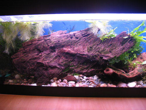 В аквариуме с апреля-месяца. Смотрится прилично. Имеет плоскую форму. Высота (или длина)- 40см.