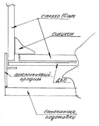 Сам аквариум,стоящий на ДВП, по периметру опирался на алюминиевую рамку шириной 10мм.