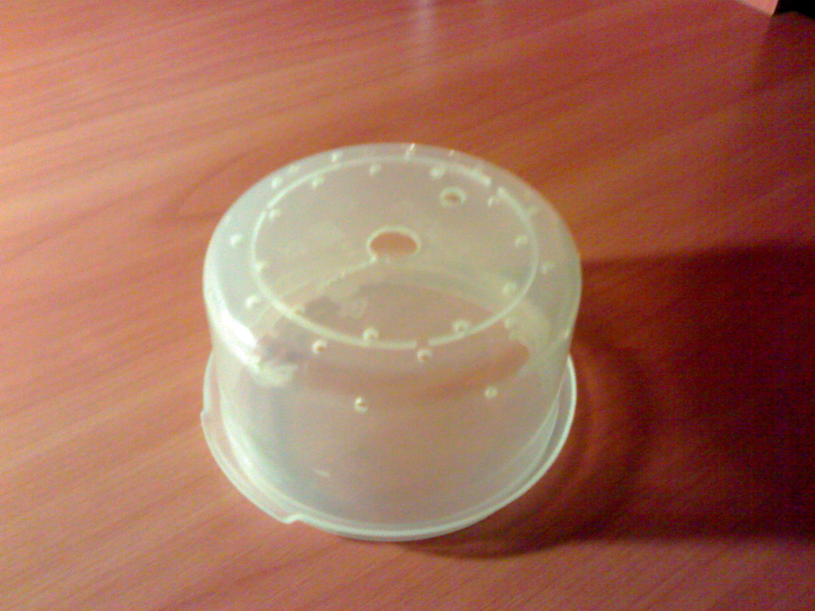После покупки ваза заняла почетное место наверху книжного шкафа, в виду того, что надо было продумать устройство крышки с освещением, другого оборудования. Обдумывание заняло порядка недели, в результате были сделаны выводы: крышка должна быть легкой для устойчивости, крепиться жестко, иметь отражатель в виду высоты столба воды. Выбор материала был сделан в пользу пластмассы. Вооружившись рулеткой, которой были предварительно замерены диаметры вазы, начались походы по магазинам, супермаркетам в отделы освещения, посуды. В результате был приобретен пластиковый контейнер для продуктов, пластиковая лейка. По размеру контейнер должен был входить в вазу, лейка соответственно в контейнер. Радости и удивлению не было предела, когда контейнер стал в вазу тютелька в тютельку – видимо их делают либо на одном заводе, либо специально под размер друг друга.