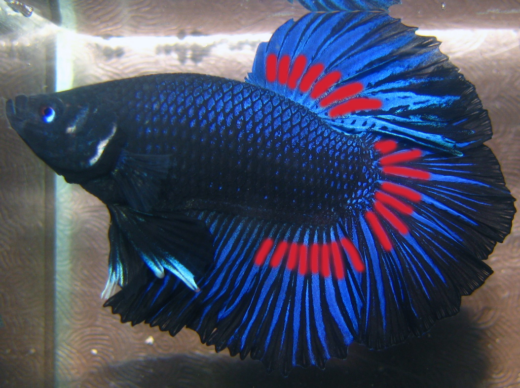 Тело рыбы расцветки чёрная орхидея должно быть сплошного чёрного цвета без красноты и признаков мраморного типа расцветки. Равномерная глубина цвета от кончика рта до конца всех лучей в плавниках является идеалом, и не должно быть перехода переливчатого окраса с плавников на тело.