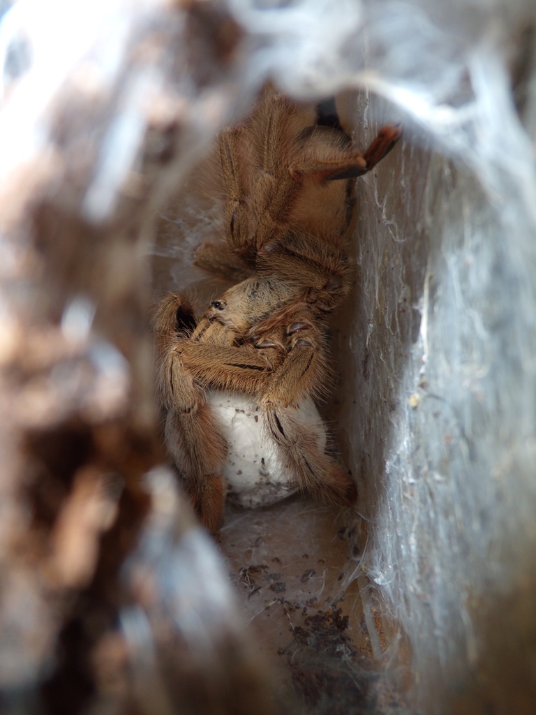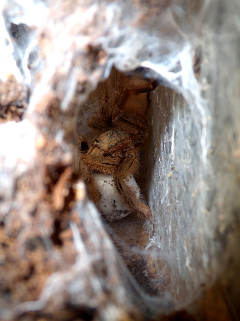 Опять Psalmopoeus pulcher порадовала . Очень примечательная самочка у которой пока не было сбоев при размножении . Это уже её 4 кокон. Два у старого хозяина (Furfur , Питер) ,два у меня. З предшествующих были удачные посмотрим ,как справится в этот раз.