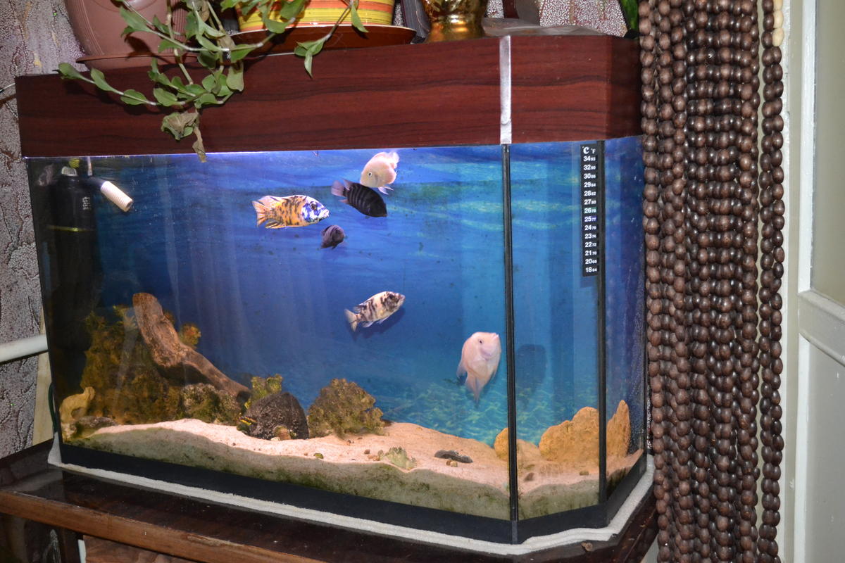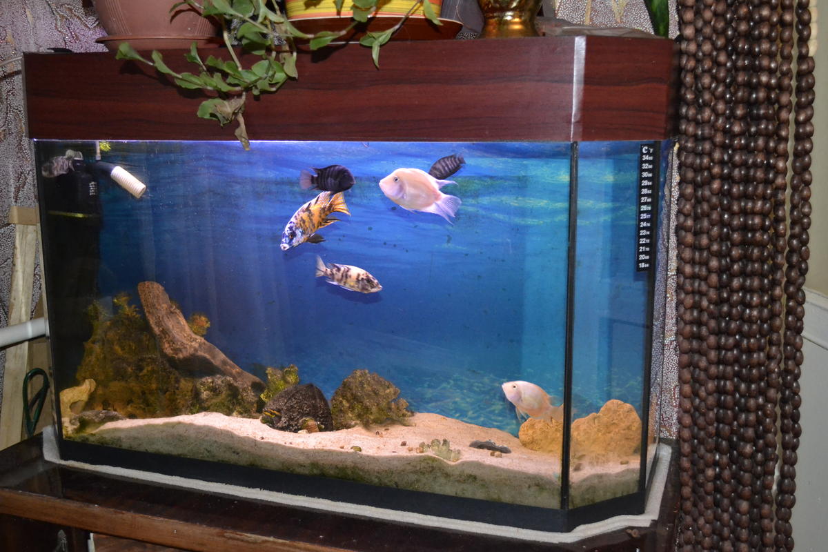 Продам аквариум на 100 литров, "мокрый", (в*ш*г) 50*80*25см, базарного производства (клеят где то недалеко, не фирменный), б\у, состояние на 4, недостатки - верхнее стекло, так сказать "крышка" треснуто (держится только за счёт оракала но можно легко вырезать, там прямоугольник) на "лобовом стекле при близком рассмотрении видны незначительные царапины. Плюсы, могу продать так как он стоит у меня, со всем и всеми ))) В комплекте даю две лампы по 20 Вт - Аквастар и обычный филипс на 6400К, два ЭПРА к ним, два влагозащищённых патрона под Т8 (больше нет) и самый большой плюс )) веутренний фильтр акваэль фан 2! за всё прошу 700 грн! В одни руки! 050 107 65 30 Михаил
