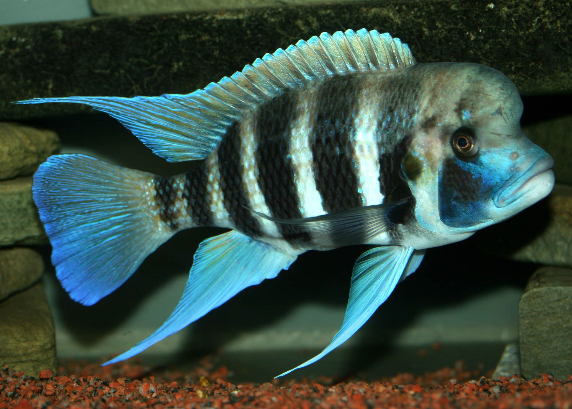 Cyphotilapia frontosa 'blue Zaire Moba' это один из последних открытых вариаций, которые отличаются более насыщенным цветом и контурами (что обозначает приставкой 'blue Zaire'), потому она сейчас популярна!