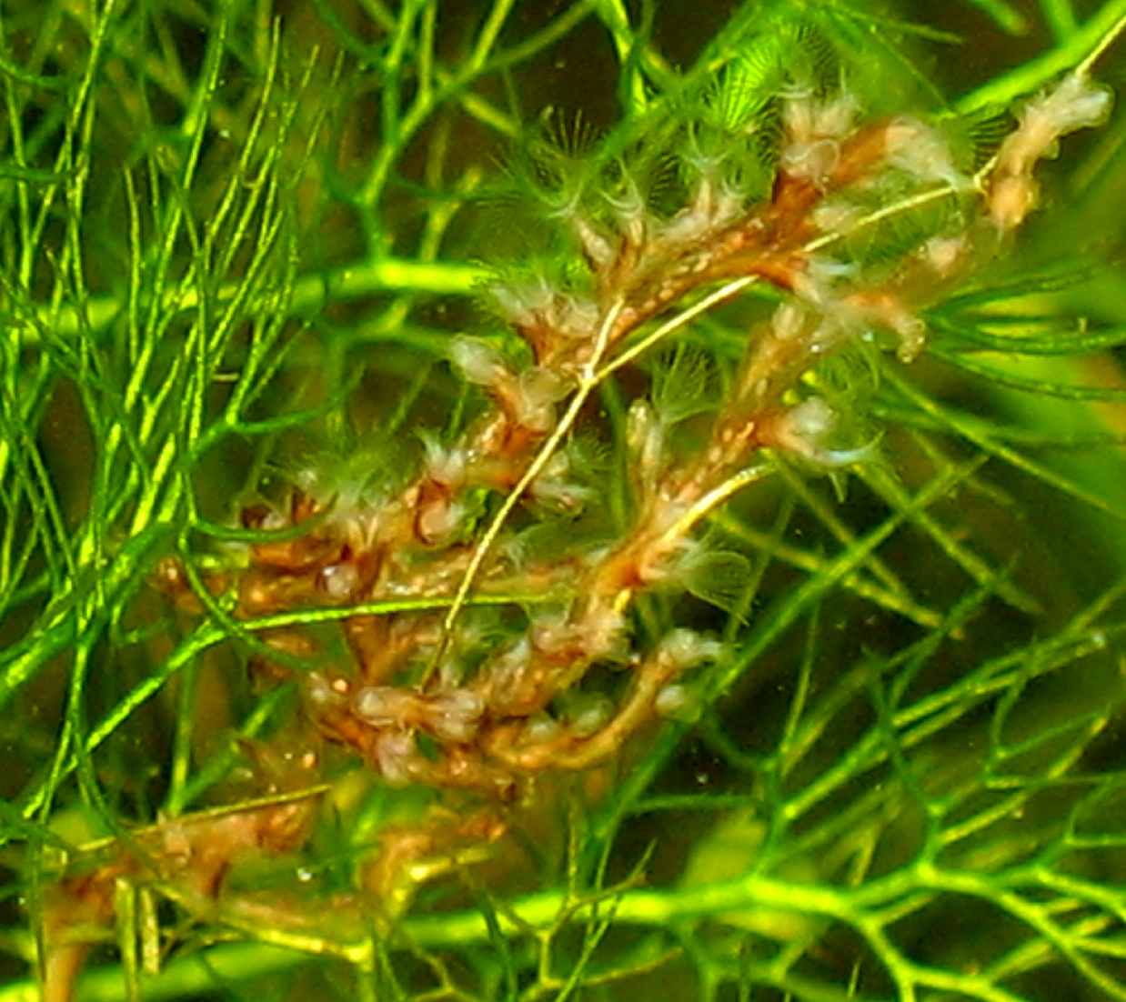 Я практически уверен, что это колонии инфузории-трубача. Я у себя их неоднократно замечал: выглядели они именно так, а саму инфузорию определил под микроскопом.