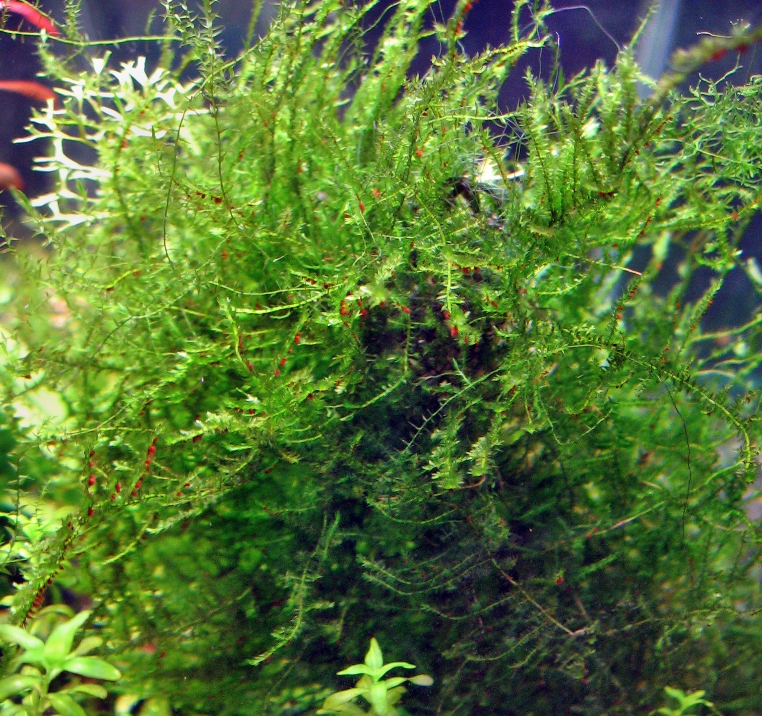 Этим мхом удачно декорируются коряги и другие декоративные элементы в аквариуме.
