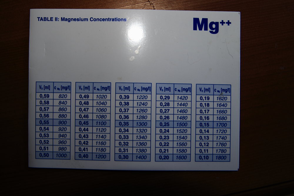 Пример: остаток в шприце = 0.35 мл = 1300 мг/л магнезии в аквариуме.