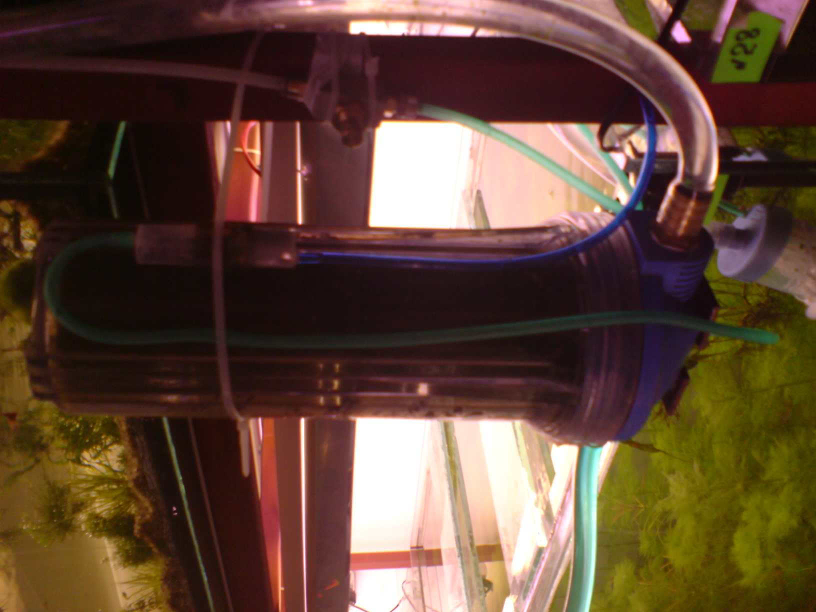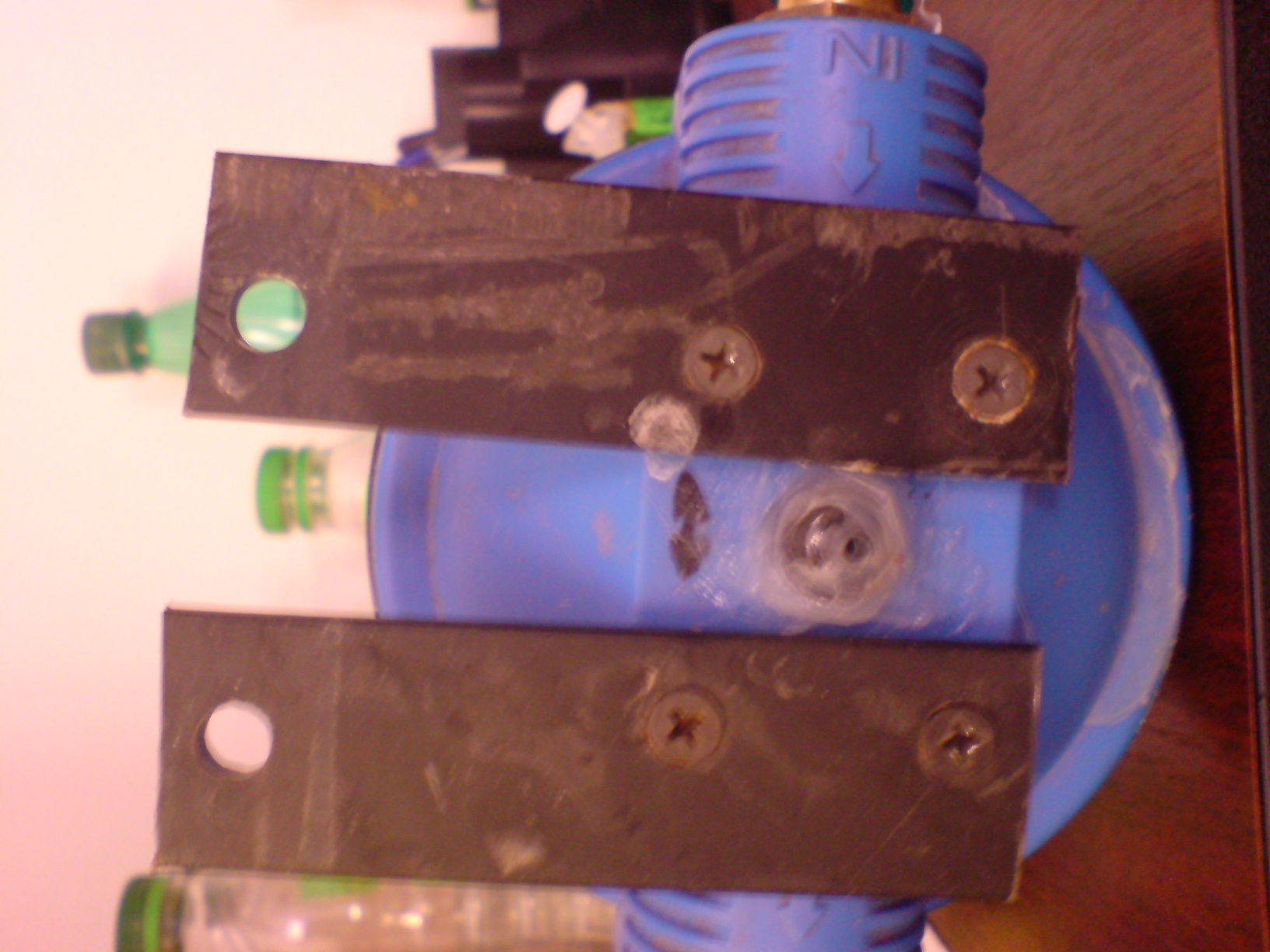 Основной деталью является крепёж для оборудования фирмы Aqua Medic,к крышке колбы прикручены две пластинки,отрезанные откуда-то.Болты служат своего рода замками,не давая этим пластинкам выскочить.Для того,чтобы реактор не упал в сторону от стойки,ближе к верху он прикреплён хомутом к балке.Реактор снабжает СО2 тот аквариум,который над ним.