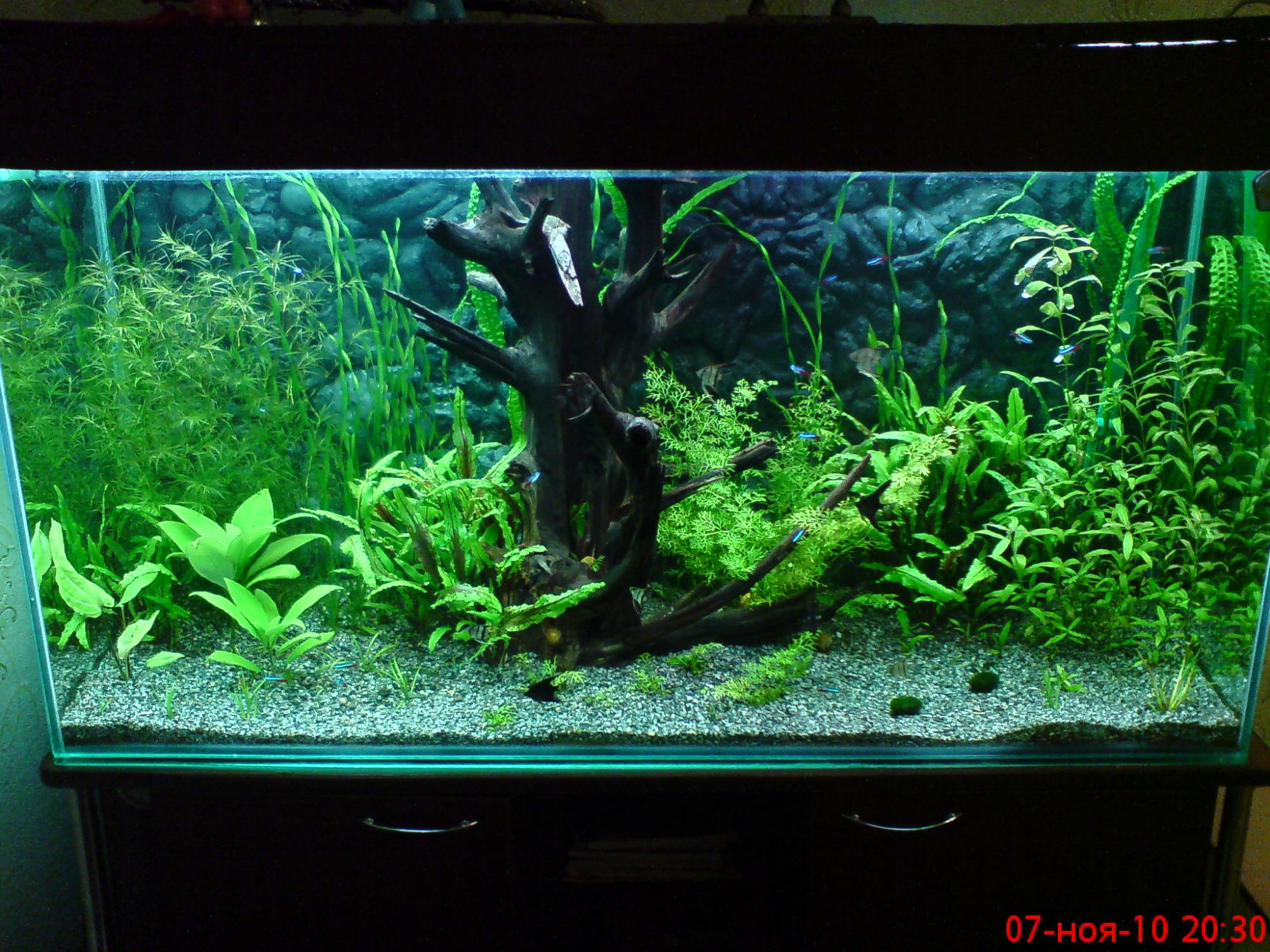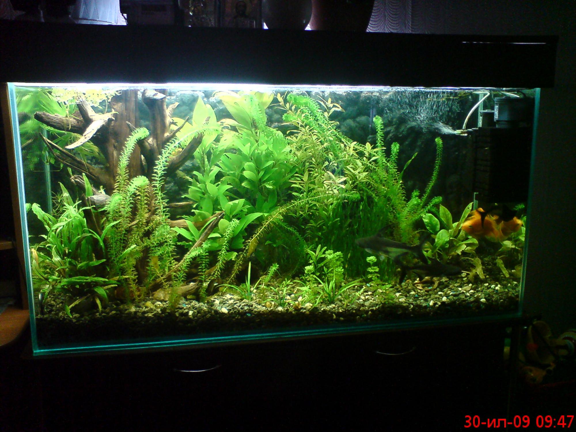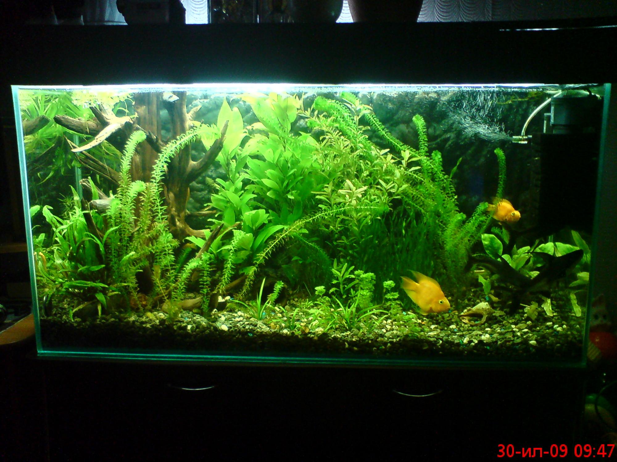 Можно было бы еще немного рыбы добавить, тех же скалярий и неонов.