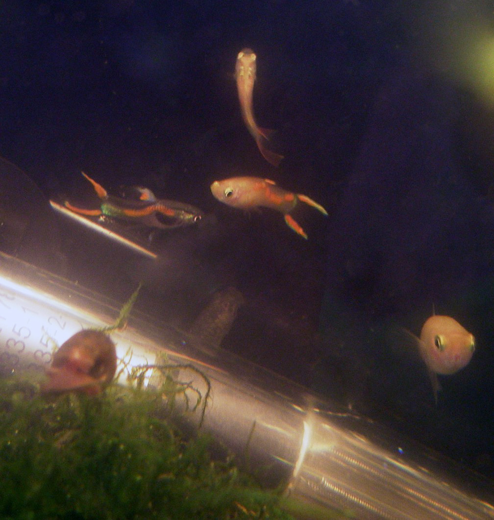 - голд не очень вышел, у них ещё пятно зеленоватое у основания хвоста. - голд и просто эндлера самцы и самки всё в куче. гляйзеровские, почти бонусом достались. в 20 л креветочник лучше не садить - десяток гупяшек позавтракали сотней мелких неокардинок тольок из под коряги десяток усов выглядывает. и мальков жрут хотя и травы заросли имеются
