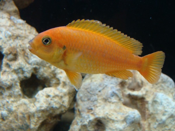 Есть потомство, на данный момент самка с икрой второй день. Она же выносила и первых мальков.Им уже 2 месяца. Так кто же папаша? Неужели меланохромис фиолетовый ( их в аквариуме 2 самца и 1 самка ) ? Малёк начал окрашиваться в оранжевый цвет.