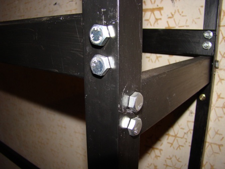 Ну а сами материалы для стойки ... возможно под 4 вертикальные стойки - уголок 63-й, горизонтальные полки - профиль, скажем 40х40, может и мощнее взять.