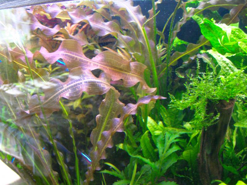А насчет света, все зависит наверное от глубины аквариума и от того какие лампы, может и хватит, а если нет то будет вытягиваться до поверхности.