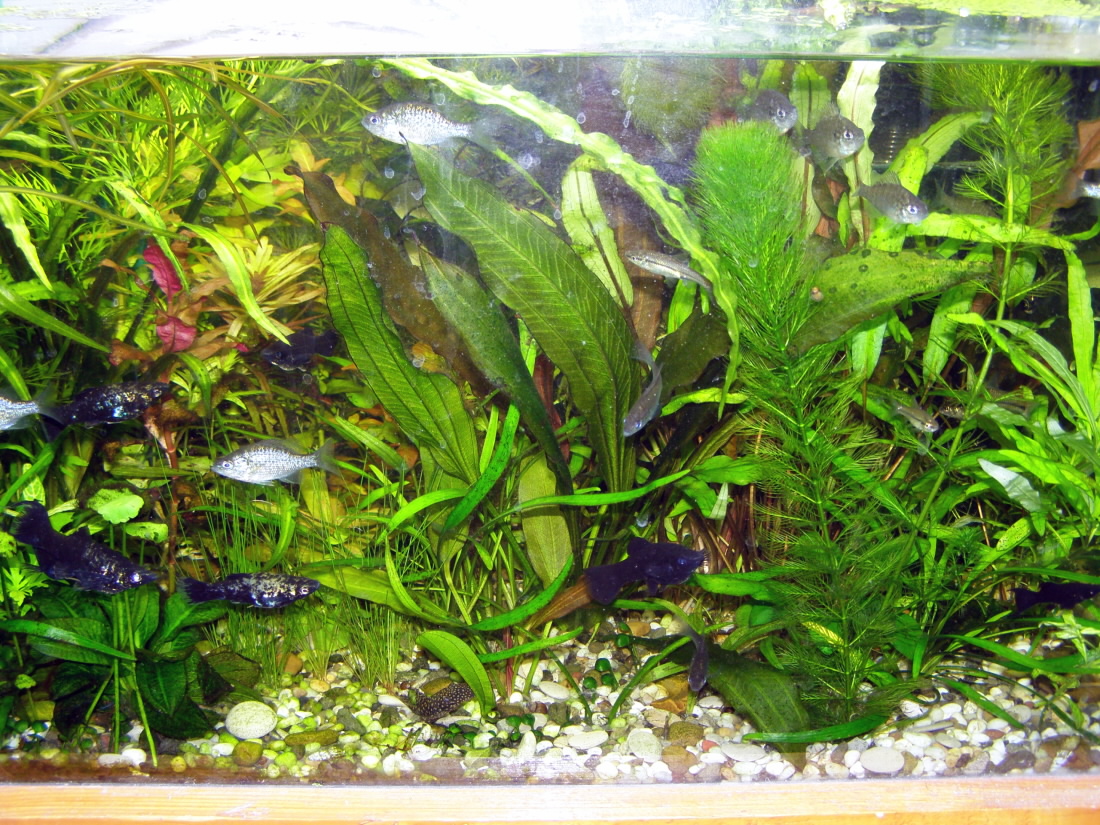 аквариум у меня давно, а свеженький он потому, что фото сразу после глобальных перемен, сейчас все выглядит подругому) валиснерия разраслась и закрыла почти всю заднюю стенку, а вот лимнофила, прозерпинака, ротала и красное растение (не помню как называется) не прижились(( прозерпинака и красное так и не пустили корни, сбросили листья и постепенно сгнили, а лимфонилу и роталу такое ощущение, что улитки ели)) хотя не уверен...