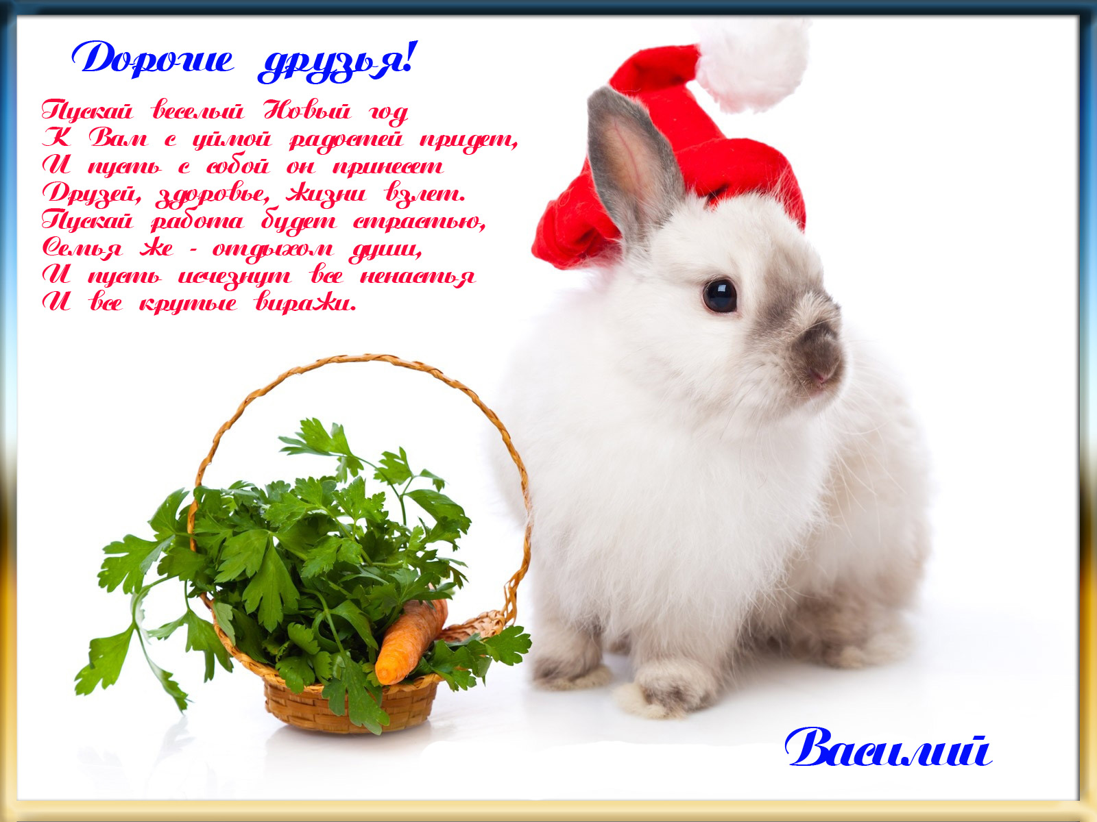 Буду юмаристичнее и банально поздравлю).В красной шубе с красным носом,Дед фигачит по морозу: в шапке,с палкой и мешком,и с бухим снеговиком.Рядом кролик в каблуках и снегурка на рогах.Если встретишь этот сброд,значит скоро Новый год!