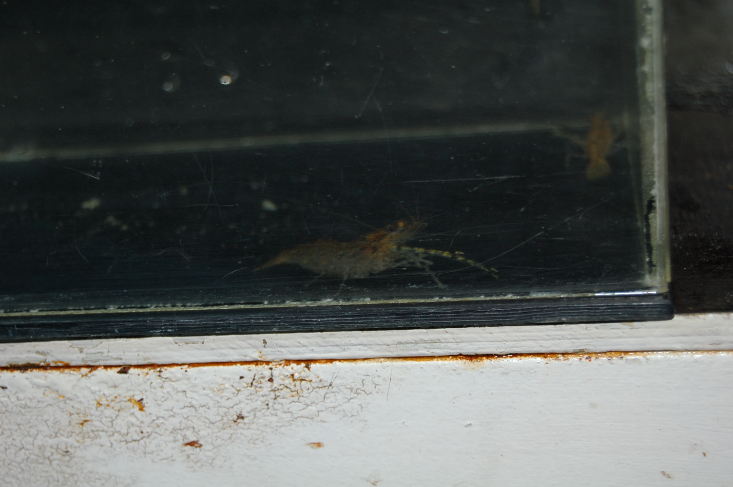 Самку с икрой я отсадил и выклев происходил в отдельном аквариуме. Вторая самка икру видимо сбросила , или выклев произошёл в общем аквариуме , где находились все креветки. Ни одного малыша я там не нашёл.