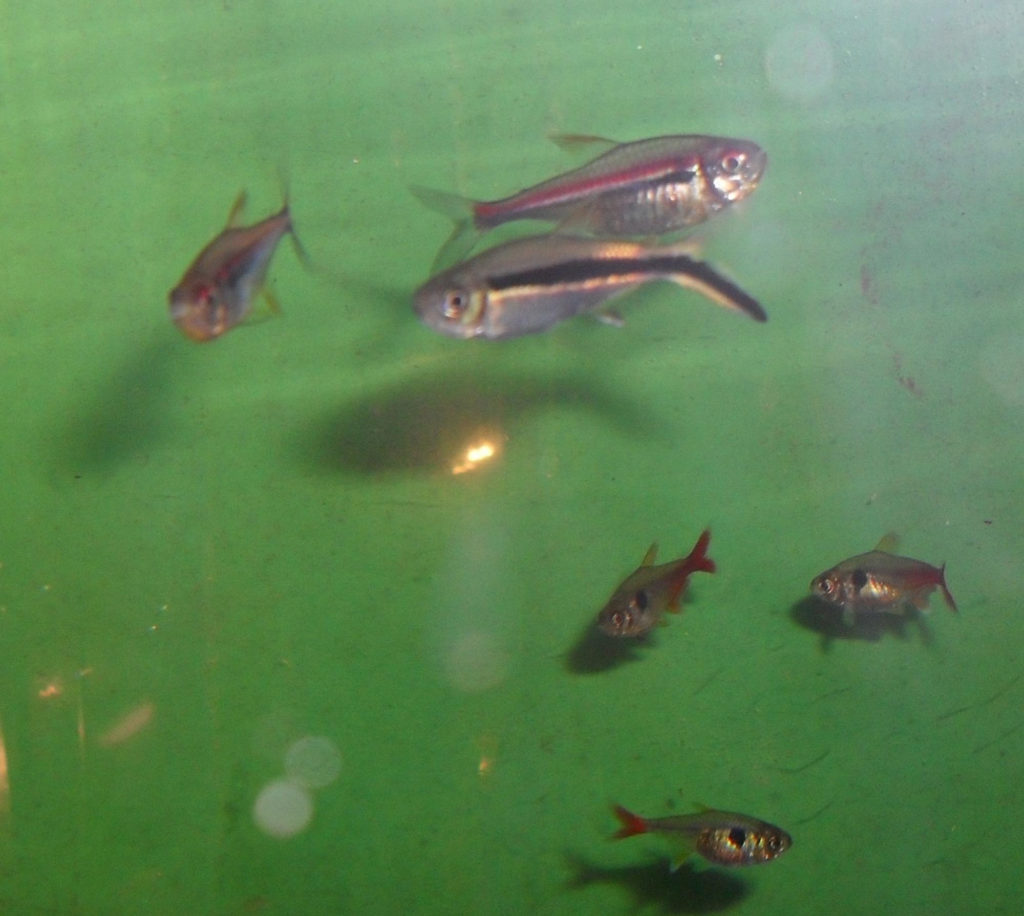 Хочу сказать спасибо за новоселов. Пока сидят отдельно. Не знаю как будет в общем, но пока в приглушенном свете самые эффектные - костелло (хоть они и не костелло, а Hemigrammus hyanuary). И самые обжористые  .