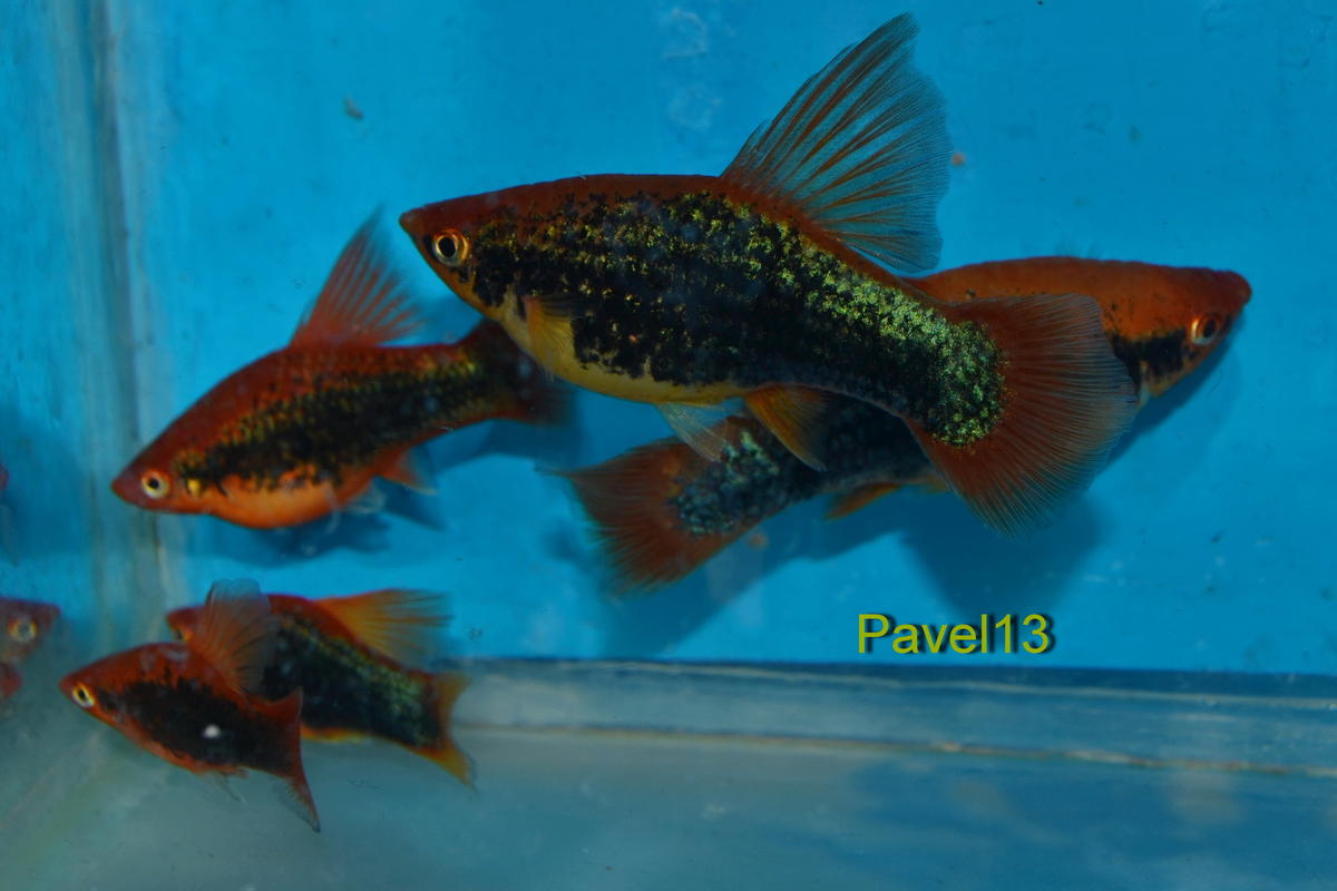 Пецилия вариатус (многоцветная) она-же Лимия и моллинезия сфенопс, как правильно обзываеться не знаю, только вчера товарищ подарил мне этих прекрасных малышей.)