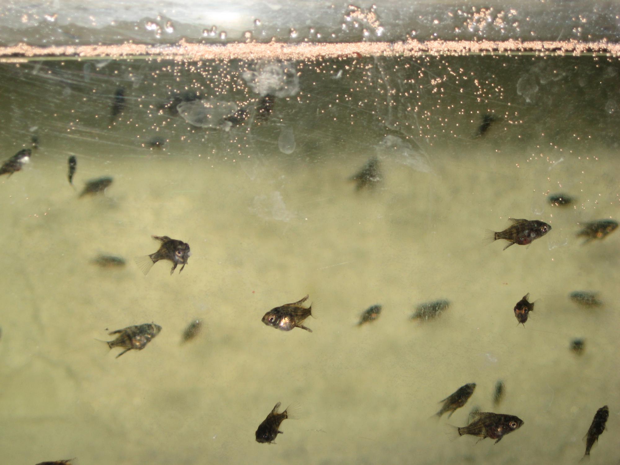 В 10 литровом аквариуме на окне было около десятка недельного малька на 10 литров воды