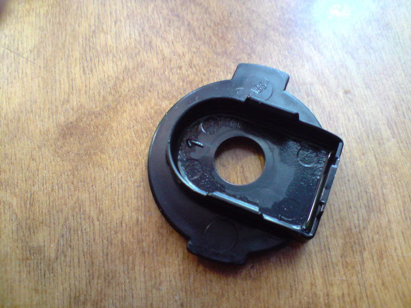Второй - рискованный, т.к. результат не гарантируется. Вырезать из тонкого, но жесткого пластика круглую деталь. Она должна быть просто круглой и плоской с двумя упорами, чтобы фиксироваться в пазах и отверстием по центру. В качестве пластика можно попробовать отработанные банковские пластиковые карты/карты моб операторов/дисконтные карты либо найти что-то другое.