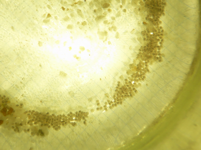 УРА!!! Начали вылупляться.Мамаша набирает в рот и выплевывает в угол, в кучку. Я решил пересадить в банку половину.