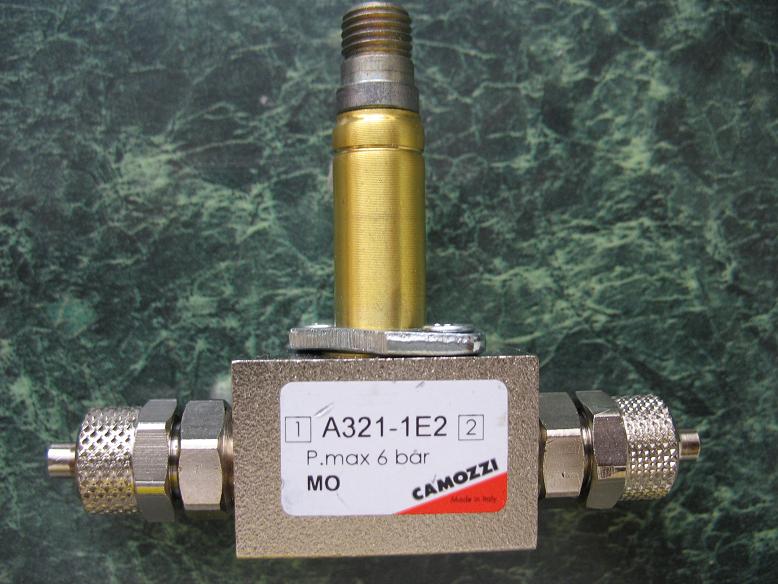 5. А321-1Е2 Минираспредел. ел. пневм. 2/2-1/8 (электромагнитный клапан) с фитингами.