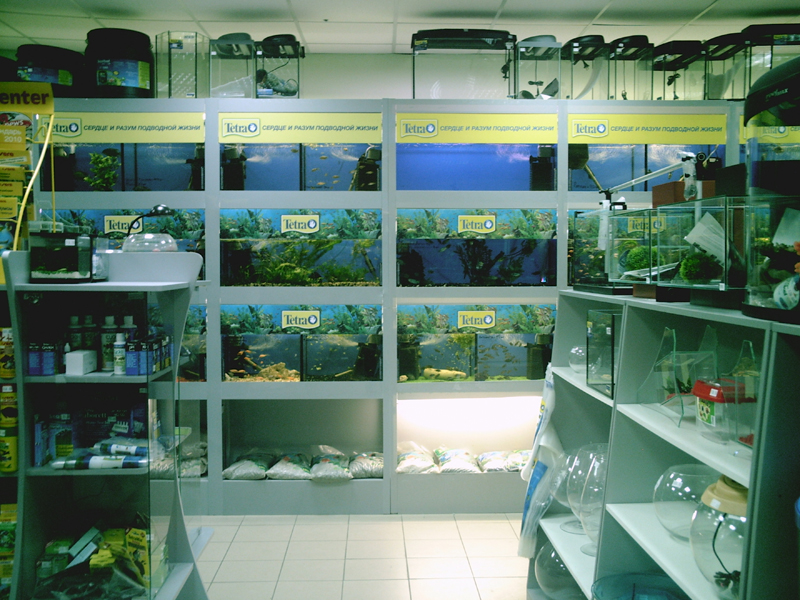 товары для аквариумистики (Корма сухие и мороженные, аквариумы, оборудование к ним, мебельные тумбы под аквариумы, декорации, грунты и другое);