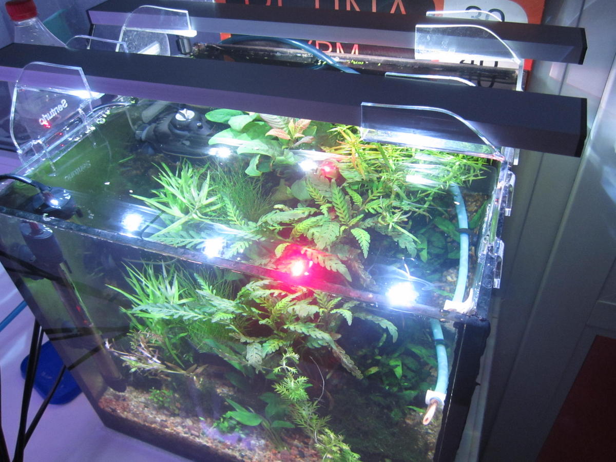 Светильник на аквариум в тумбе. Зазор над аквариумом всего 3 см до полки пришлось делать нестандартный гиб ножек. Но, со светом на профиле П40 получилось втиснуться. Пока не передан Заказчику - тестировал как всегда на своем аквариуме и пофоткал.