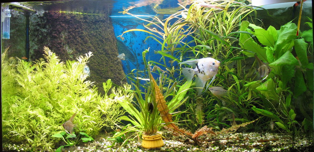 у меня аквариум - 1000х40х60, запущен 30.03.09, грунт ADA Amazonia, примерно 10 см, задумывался как "травник", ежедневно добавляю удобрение ADA green brighty, раз в неделю меняю не больше 10-20% воды, при подмене использую водопроводную воду и нейтрализатор хлора ADA, а так же бактерии ADA bacter 100.. особого разнообразия в растениях нет.. 1 анубиас на-на, 1 анубиас spec., 3 бакопы мадагаскарские, немного лилаеопсиса бразильского (получить английскую лужайку я уже отчаялась), мох яванский на камнях, папоротники таиландский и Винделова - на коряге, немного валлиснерии для заднего фона, и кладофорой заткнуты щели под корягой.. из живности 23 неона, много креветок черри и обычных, и просто безумное количество улиток, с которыми я уже устала бороться.. вопрос по ходу - может есть какая-нибудь рыба, которая питается икрой улиток, и ими самими?.. вопрос в следующем.. листья папоротников и, в основном, анубиасов покрываются черными точками.. причем, сначала, листья вырастают красивыми, зелененькими, а через неделю становятся черными, как на фотке.. как мне спасти мои растения?