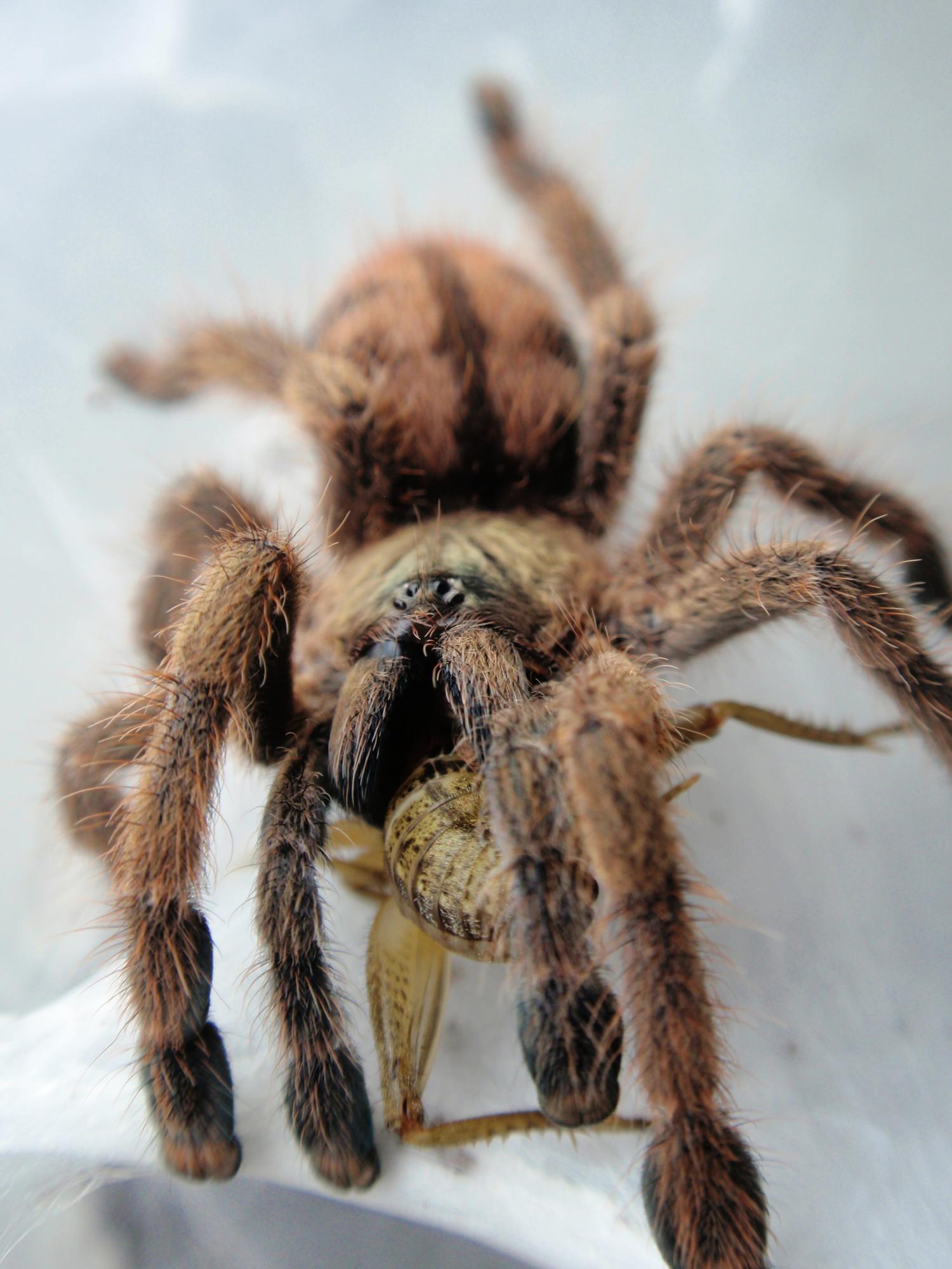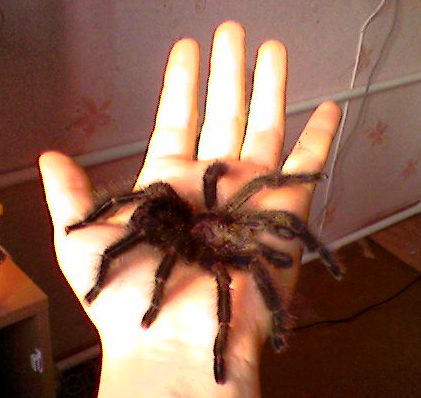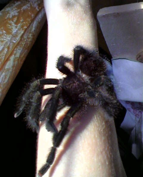 Avicularia laeta приблизительно 5л. Я её не узнал когда перелиняла))) раньше различия между версом и лаетой были минимальны, можно было даже перепутать...
