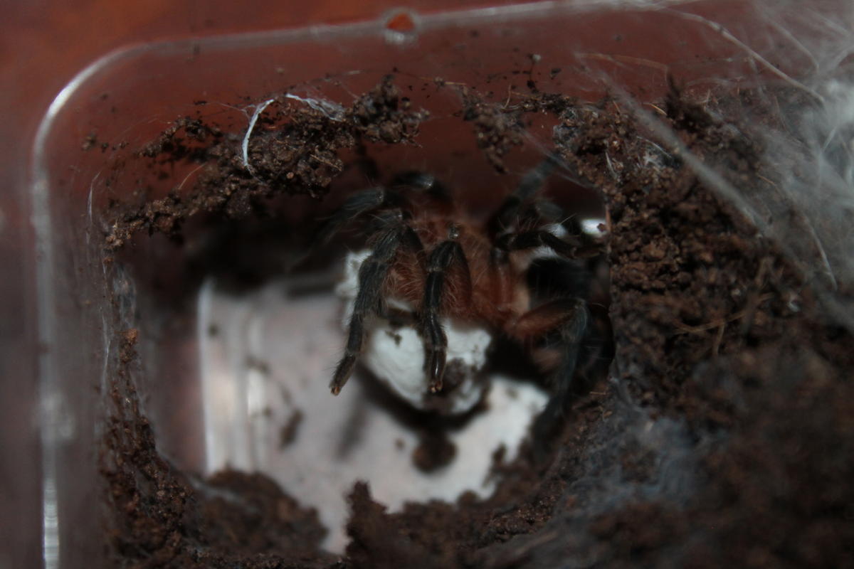 Задолбали уже их ночные барабанные трели :-) Самку в соседнем террариуме они тоже уже так достали, что она сдуру сплела фантомный кокон. Заберите кто-нибудь, пусть уже они познают радость секса, или пусть их сожрут. Оба 6 или 7 линьки, не знаю точно. Вот фотки: