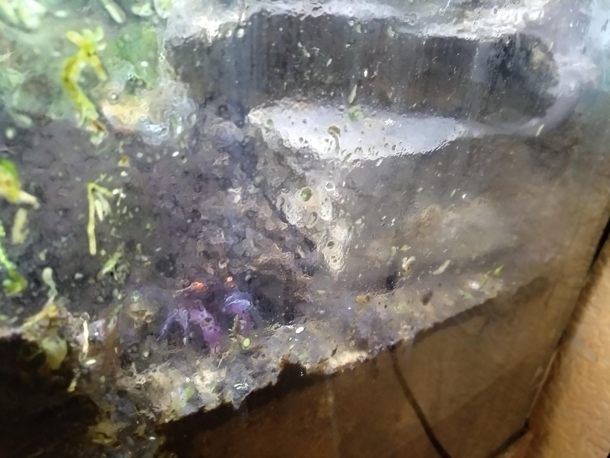 Грунт-торф верховой,сфагнум,листья дуба.Растут папоротник и плющ.Крабики вылазят редко и вечно меня пугают т.к. сидят на одном месте не шевелясь.