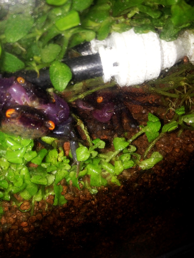 wnoskoff, Стабильность температуры не ключевой момент.У меня они живут иногда с суточными перепадами 22-28 С . Разнообразие питания - относительный момент. В природе это детрит и насекомые. У меня едят живых насекомых , как тех , что можно купить в зоомагазине для рептилий (сверчки ,тараканы) ,так и тех что живут в террариуме с крабами постоянно (тропическая мокрица, разные многоножки , ногохвостки, черви и т.д.); детрит - в террариуме это рост бактериальных матов на ярком светодиодном свету, более всего в местах засыпки пластинчатого корма SERA для рыбы .