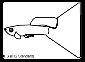 . . Слово "Привет - плавник " , означает " высокий , удлинненный плавник" . Стандарт Мировой Гуппи Ассоциации - WGA , признает идеальной формой этот тип в виде квадрата. Другие формы могут существовать , но теряют очки по размеру и форме . WGA требования на выставках - 5 баллов за размер , 8 баллов за формат и 10 баллов за цвет , на максимальную сумму 23 балла. . . Необычные Гуппи Международной Ассоциации IFGA , признает , что основа должна иметь форму параллелограмма , с соотношением сторон 3 единицы длины , к 1 единице высоты . Спинной плавник должен быть поднят /развернут /. IFGA , требования на выставках - 8 баллов за размер , 5 баллов за форму , 8 баллов за цвет , 4 балла за "состояние" спинного плавника , на максимальную сумму 25 баллов . . . Международные Высокого Разведения Стандартов - IHS и WGA признают , что основой должна быть прямоугольная , или трапециевидная форма , с ростом выхода плавника 90 градусов , со слегка закругленными углами . В случае трапециевидной формы спинного , передние и задние края , должны быть перпендикулярны к основной линии тела , в то время как верхняя кромка должна быть параллельна той же осевой линии . Высота нижней линии спинного не должна превышать у задней части в 1.5 раза больше высоты передней части , и только его нижний край может быть под косым углом к осевой линии тела . IHS и WGA , требования на выставках - 5 баллов за размер , 8 баллов за формат и 10 баллов за цвет , на общую сумму 23 очка . - 4 / Длинный Спинной . Гуппи Клуб Сингапур .