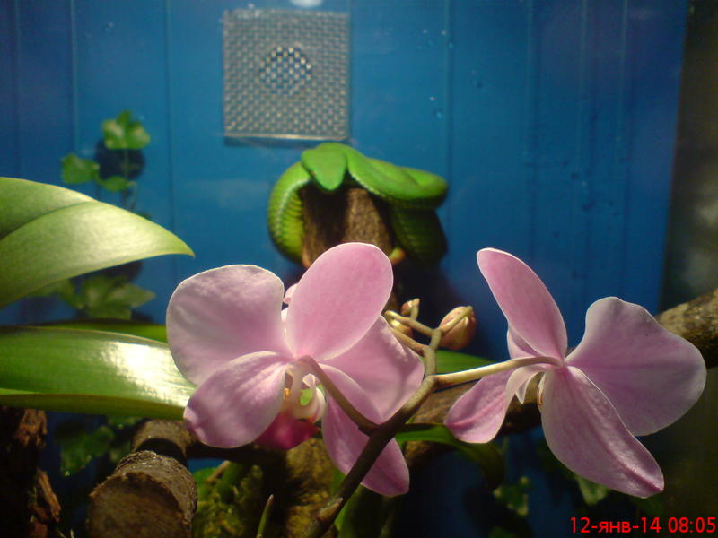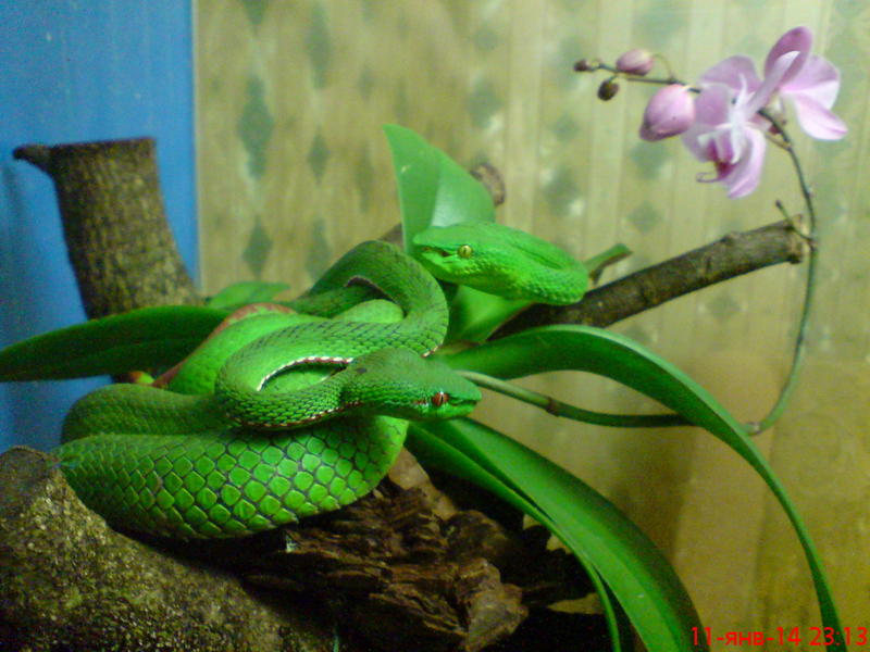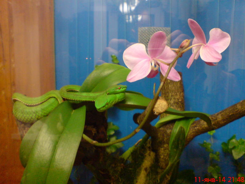 влажность поддерживается за счет опрыскивания дистиллированной водой дважды в день в 12 и 21 час. в 12 часов опрыскиваю и змей вечером только террариум. влажность находится на уровне 75-90%.